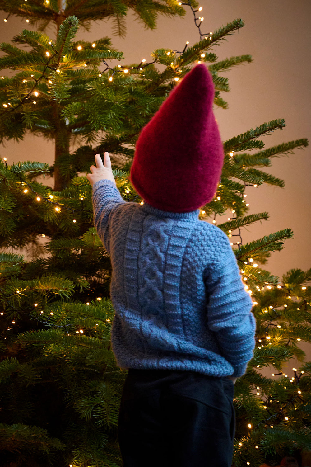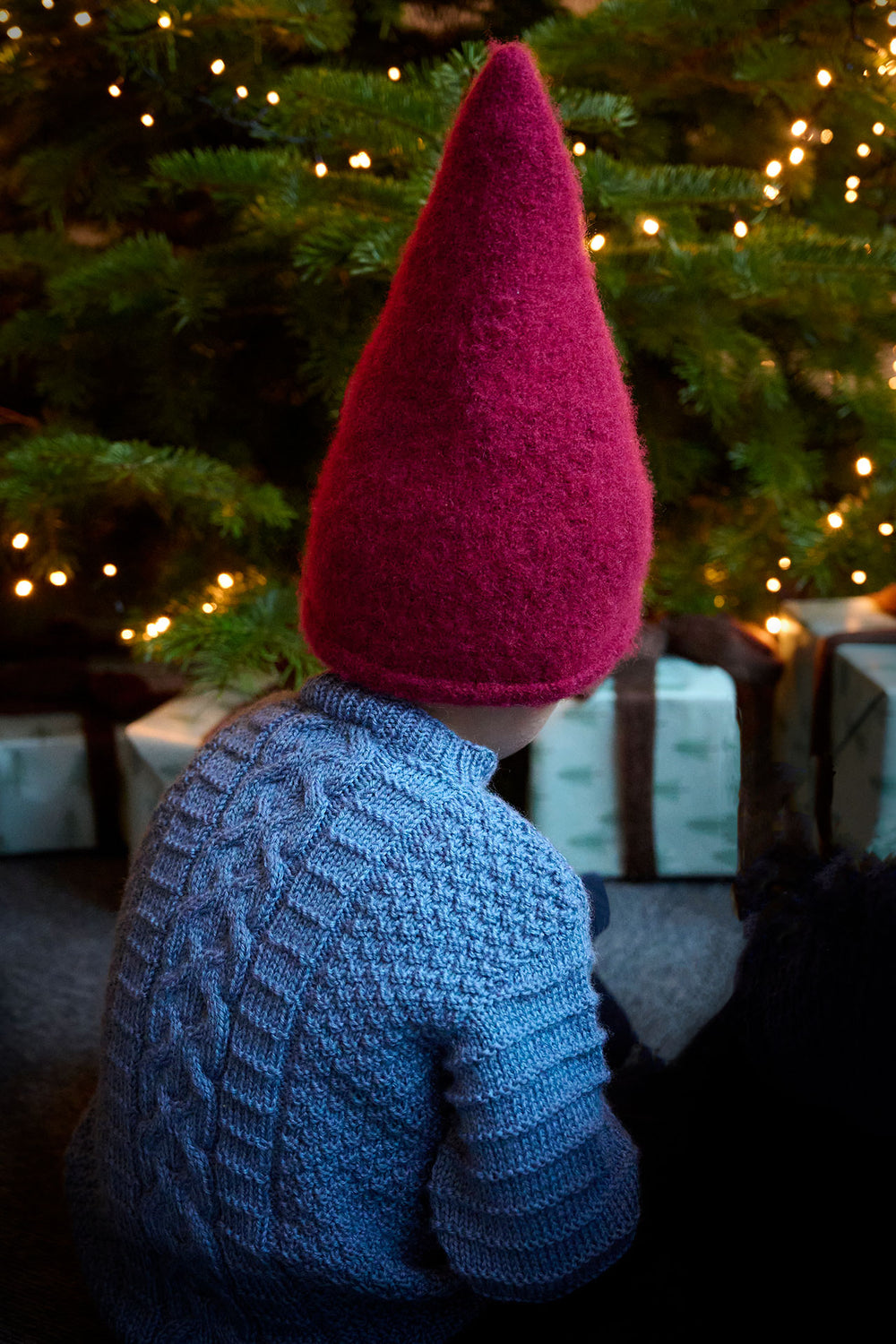 Denne superfine nissehue er strikket og derefter filtet. Dette giver huen et helt perfekt og hyggeligt udtryk. Huen er nøje sammensat i facon, enkelthed og anvendelighed, så den sidder virkelig godt på hovedet og kan nemt bruges af både børn og voksne. Den er virkelig fin at have på udendørs, fordi filtningen gør huen ekstra fast og dermed vindtæt og varm. Opskriften er helt enkelt, så alle kan være med.