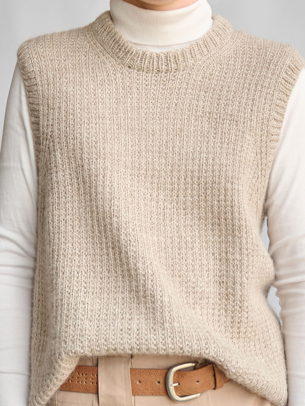 Friday slipover er et lækkert design i perlerib, som strikkes topdown. I kanterne strikkes der rib. Slipoveren kan laves i striber eller helt ensfarvet.