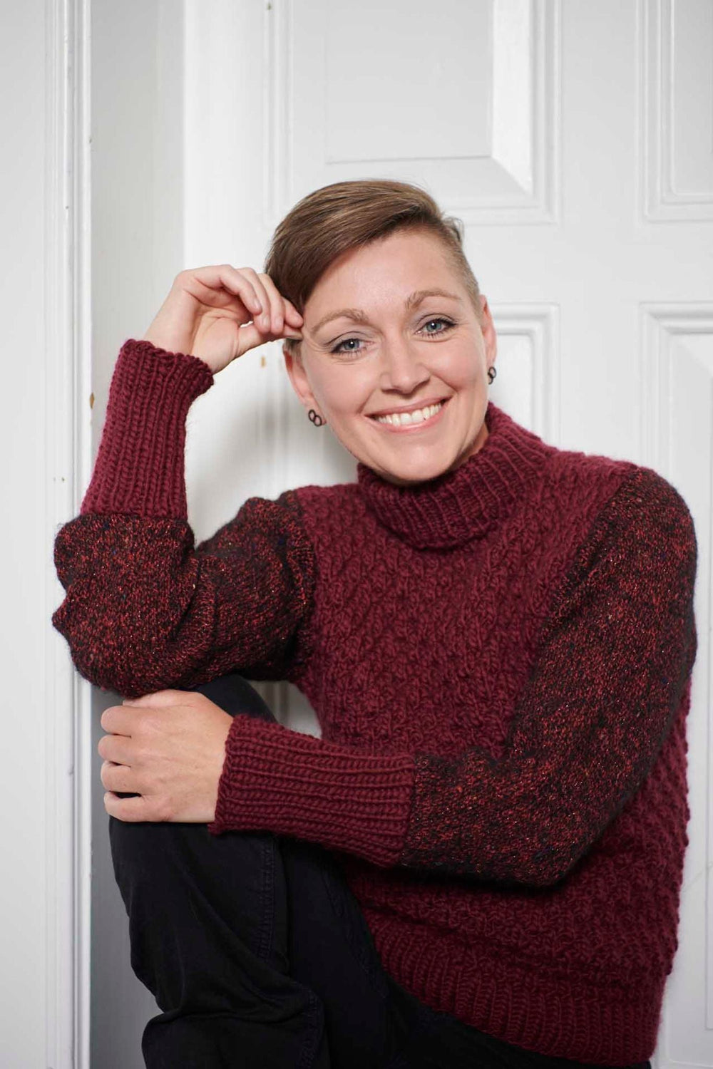 Sweateren får sit unikke udtryk og struktur, da den strikkes i to meget forskellige garner. Kroppen strikkes i det fyldige uldgarn Mayflower Molly Fine, mens ærmerne strikkes i det lettere tweedgarn Mayflower Casablanca Lux. Kontrasten og samspillet mellem de to er virkelig lækkert, ligesom du har mulighed for at lege lidt ekstra med farvesammensætningerne. Begge garner er bløde og føles dejlig mod kroppen.