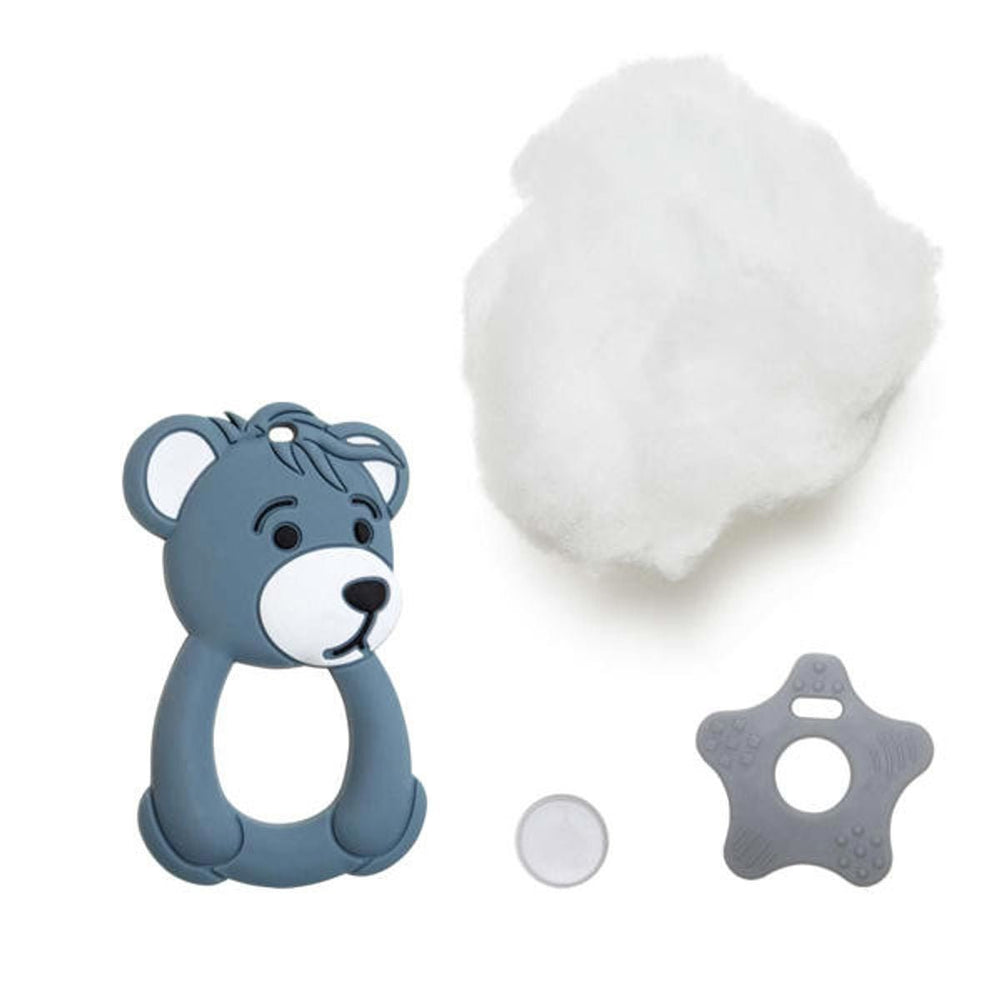 Go Handmade Sæt med Fiberfyld, Silikonedyr Bjørn 97 x 58 mm Blå, TPE Figur 60mm Grå & Raslebox 22mm Grå