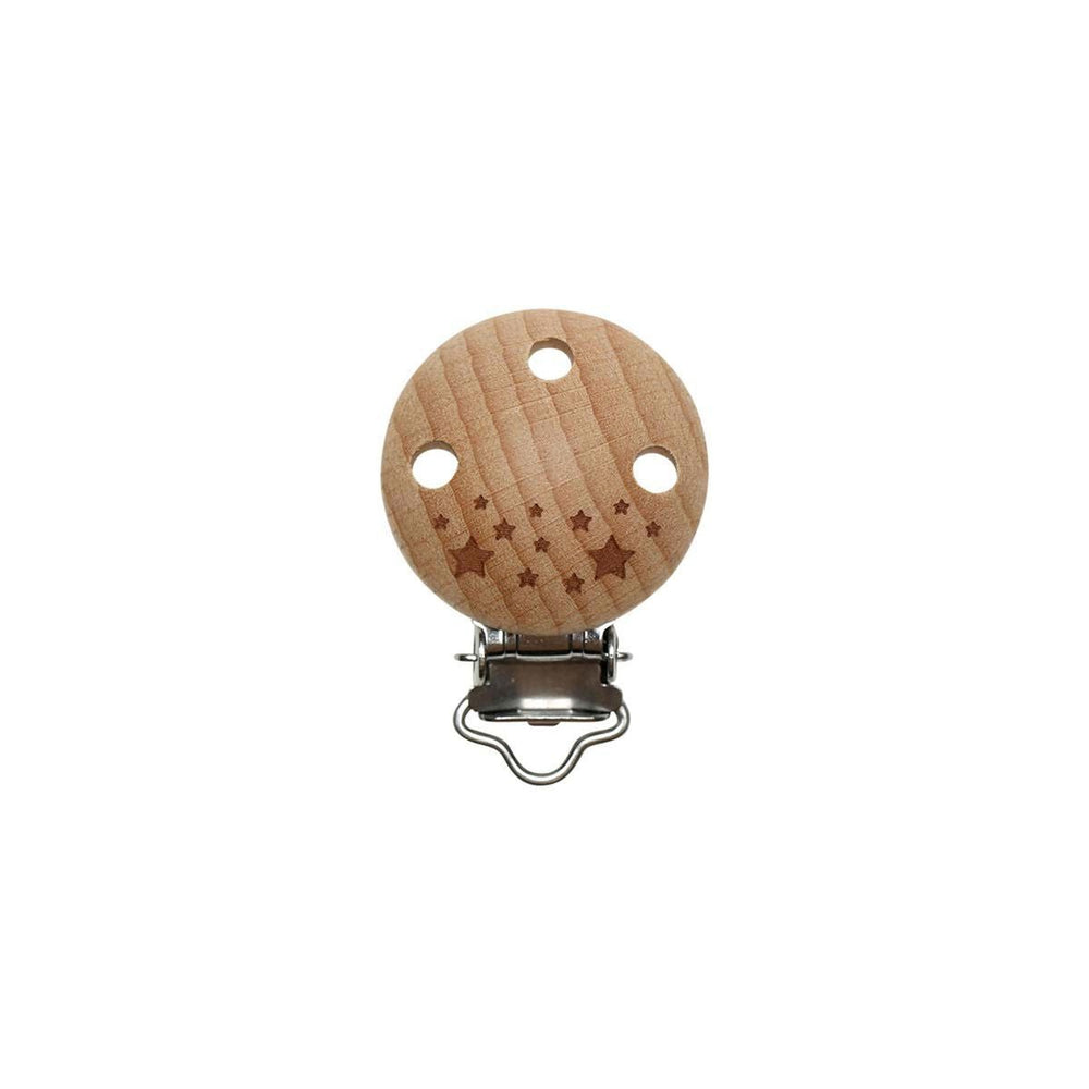 Go Handmade Seleclips Træ m. Huller 30mm Ø Rund m. Stjerner