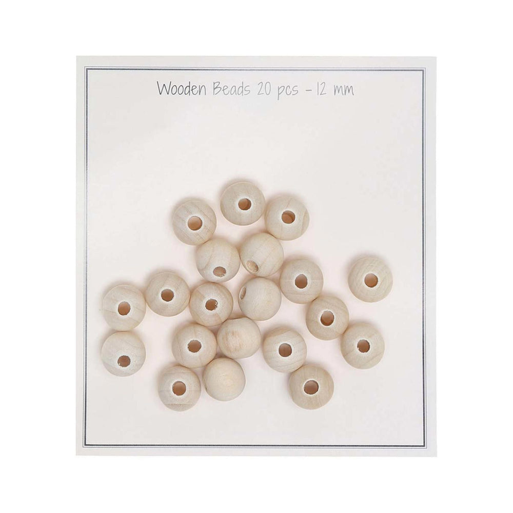 Træperlerne har en diameter på 12 mm og er gennemborede, så der kan trækkes en snor igennem. Der er 15 træperler i posen. OBS: Der kan forekomme små, mørke prikker på træperlerne som en naturlig del af træet.