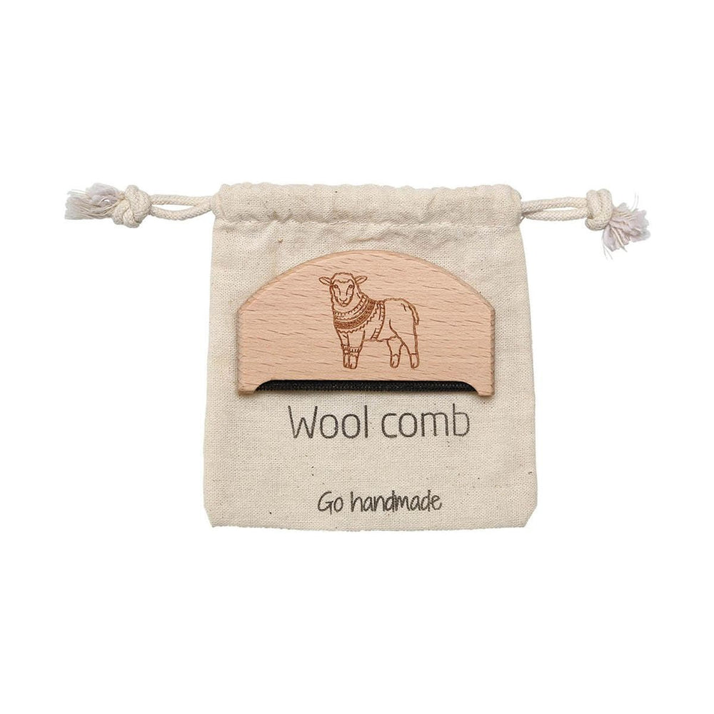 Uldkam i træ, som du kan bruge til at holde dine strikkede uldprojekter frie for fnuller og overskydende uld.