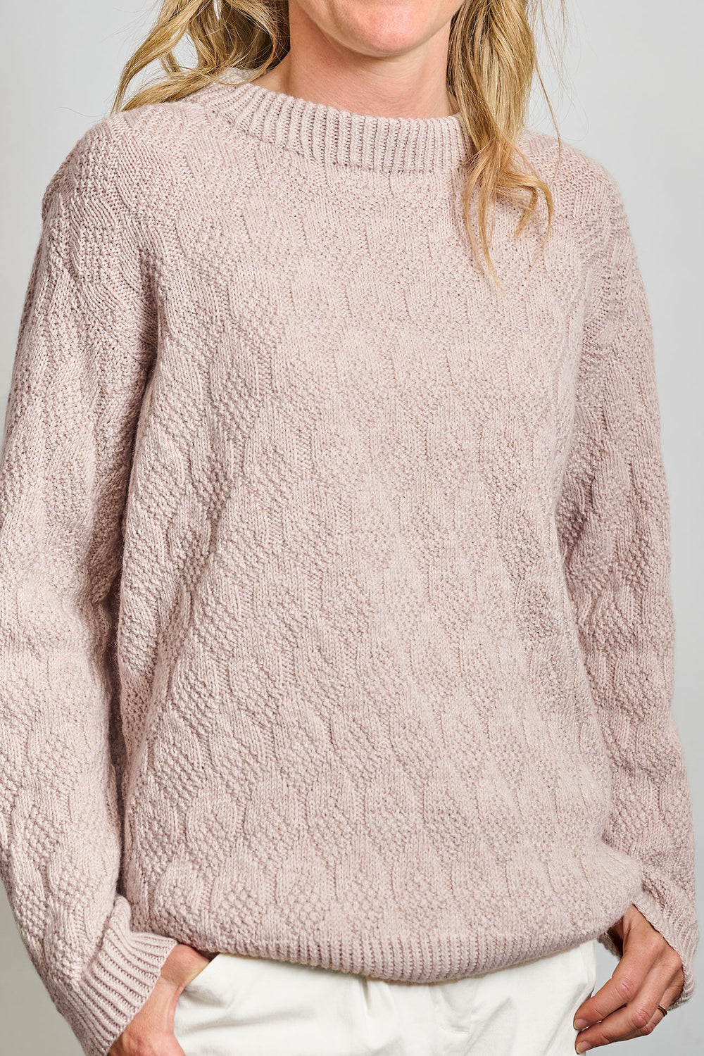 Gry sweater - York Style er en utrolig blød sweater, som strikkes nedefra og op i det fineste strukturmønster, som strikkes på hele sweateren. Kanterne strikkes i drejet rib. Mønsteret er nemt at gå til, da det laves af ret- og vrangmasker, og et diagram guider dig godt igennem.