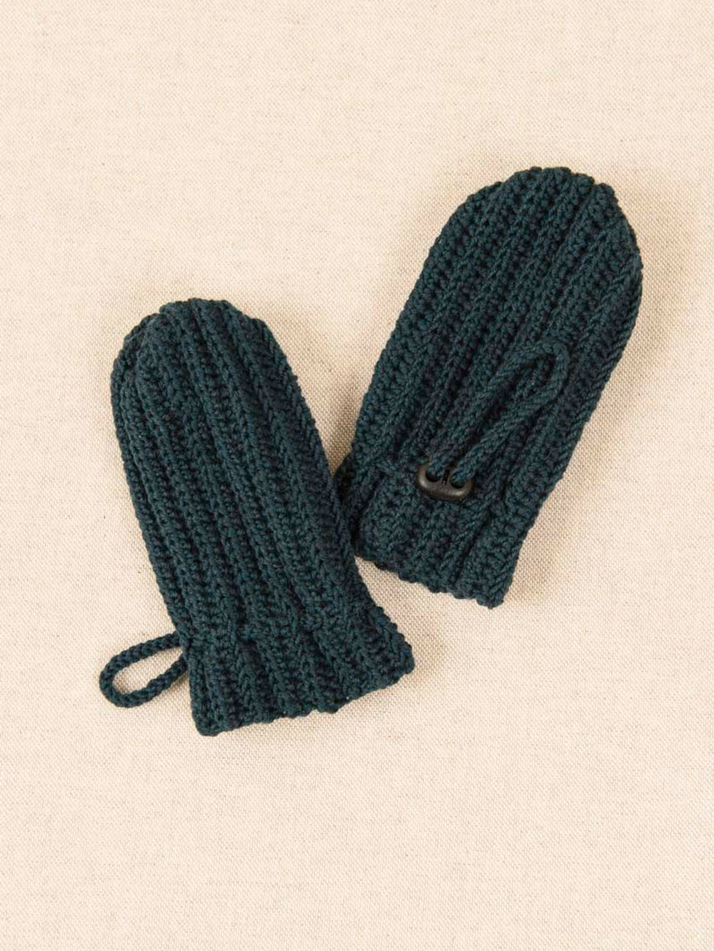 Lune og bløde luffer, som hækles til familiens mindste, ligesom lufferne også kan laves i en størrelse, der passer børn i op til 2-årsalderen. Lufferne holdes på plads af snorstoppere, hvilket også gør det nemt at regulere alt efter håndledstykkelse.
