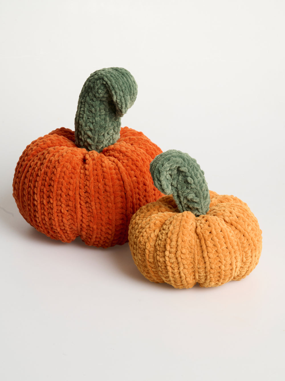 Hæklede græskar, som kan bruges til dekoration til Halloween. Græskaret hækles i Mayflower Anyday Comfy. Græskarene er oprindeligt hæklet i Mayflower Cotton 8/4, men med Anyday Comfy får du større græskar.