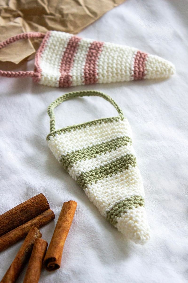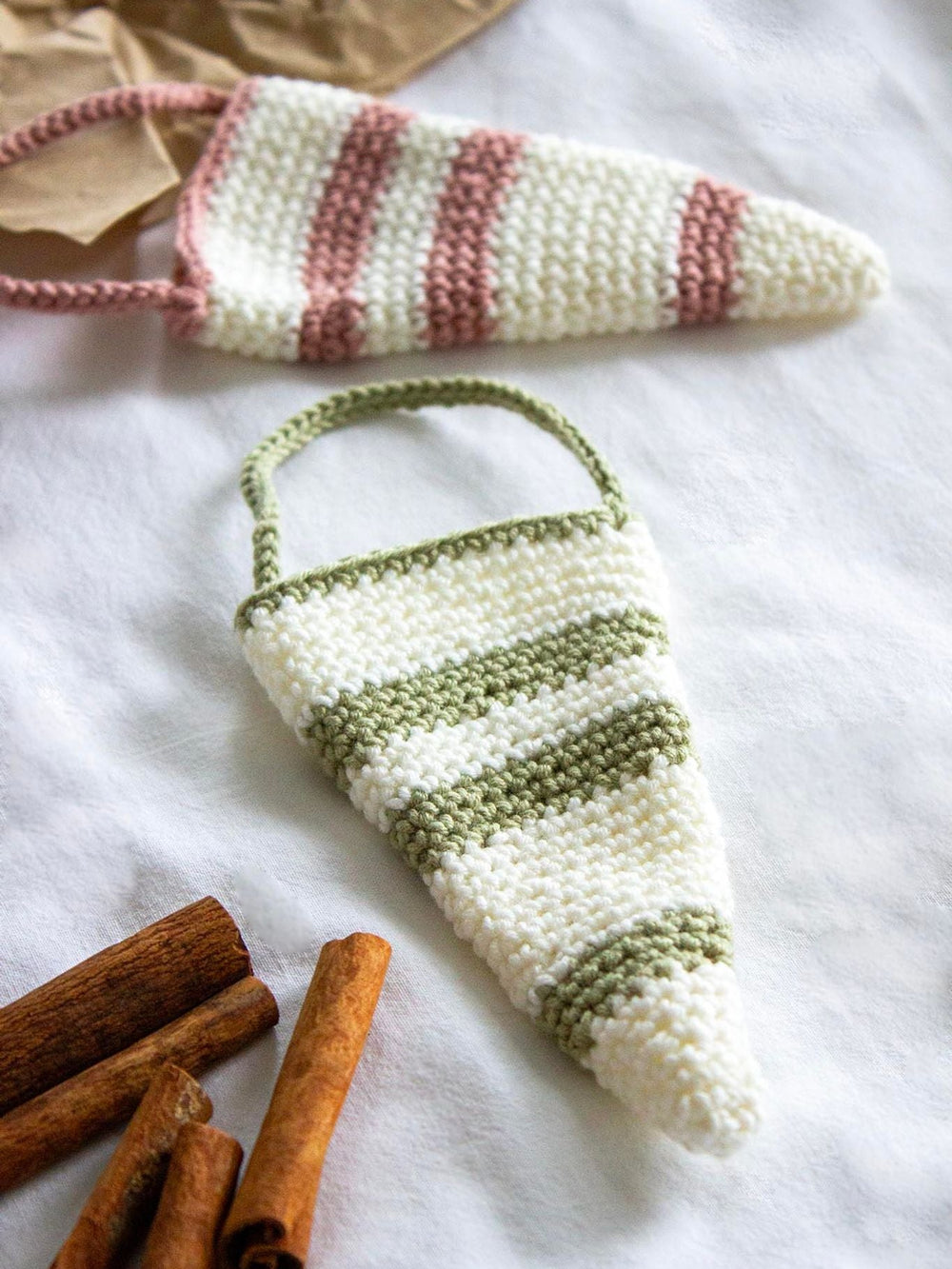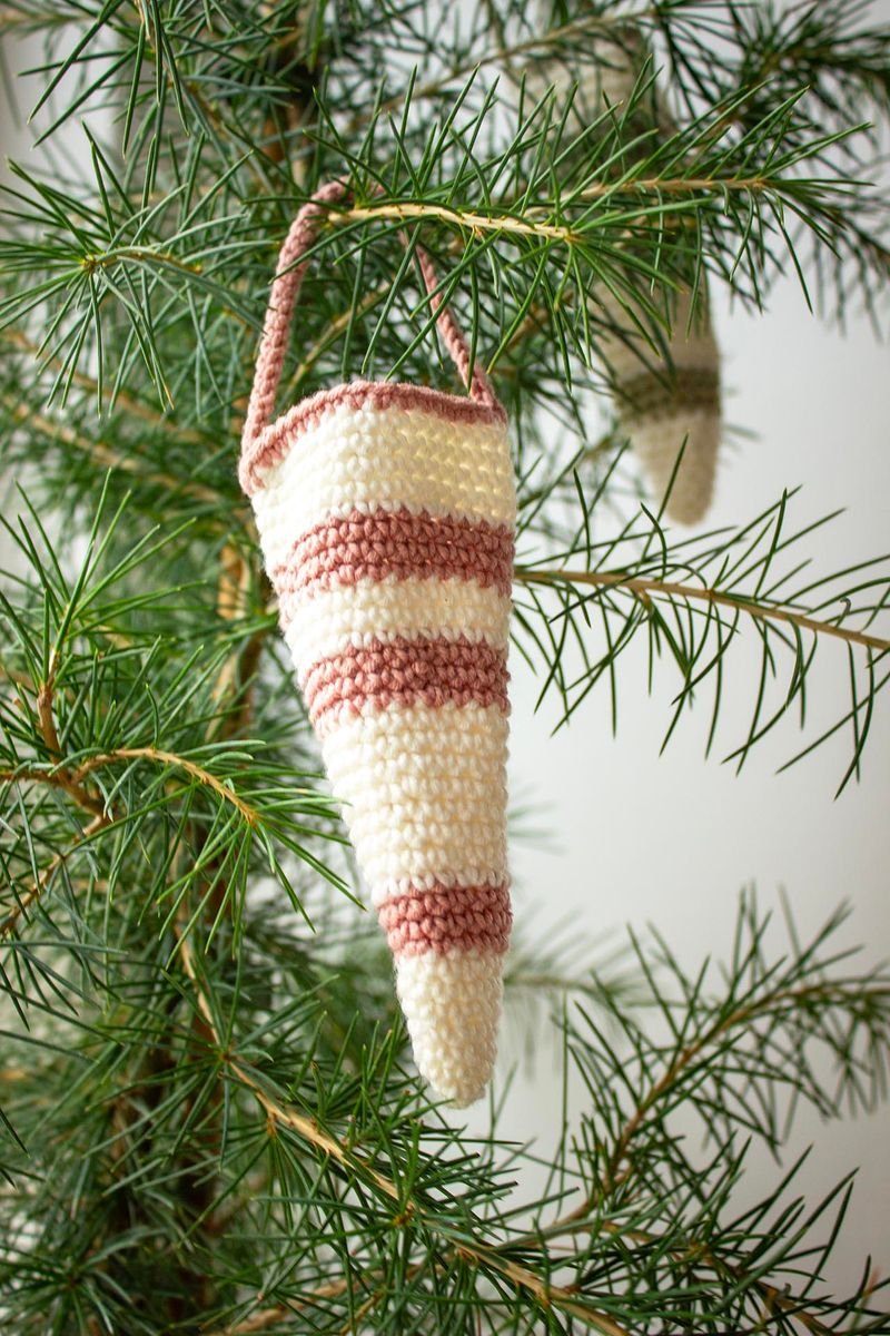 Hæklet kræmmerhus til fx julegodter, som kan hænge på juletræet eller til pynt i fx et vindue. Kræmmerhuset er et meget begyndervenligt hækleprojekt for alle uanset erfaring. Kræmmerhuset hækles i