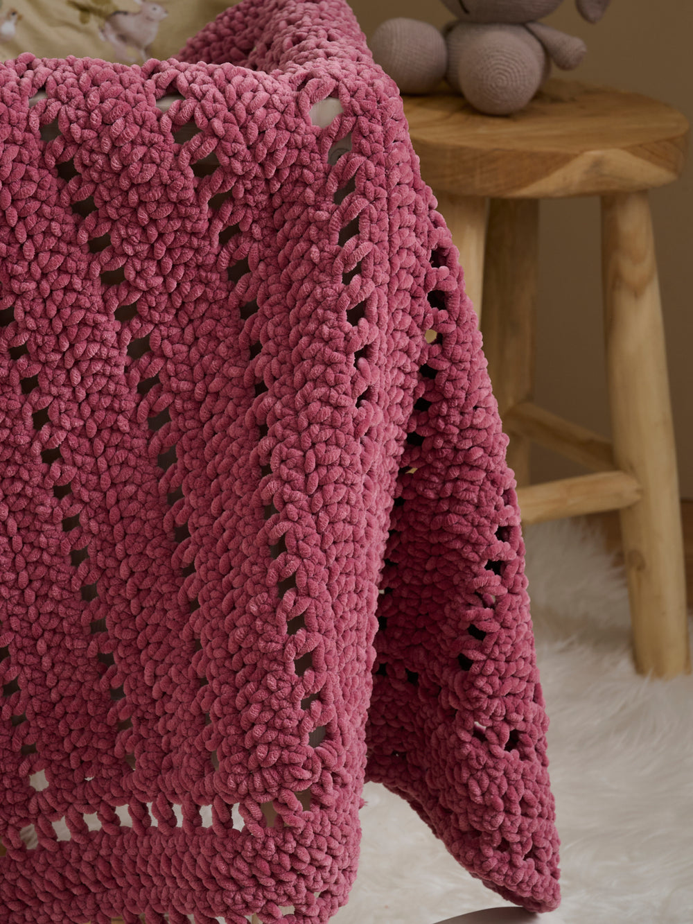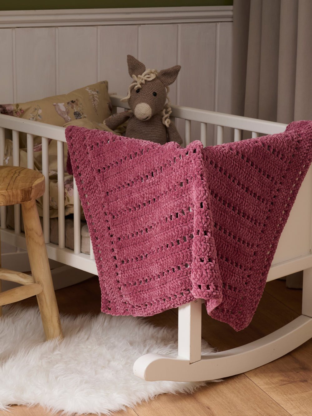 Begyndervenlig opskrift på et hurtigt hæklet babytæppe i det vamsede og fløjlsbløde Mayflower Anyday Comfy. Babytæppet har et enkelt hulmønster og hækles med enkle teknikker. Tæppet måler ca. 70 x 80 cm.