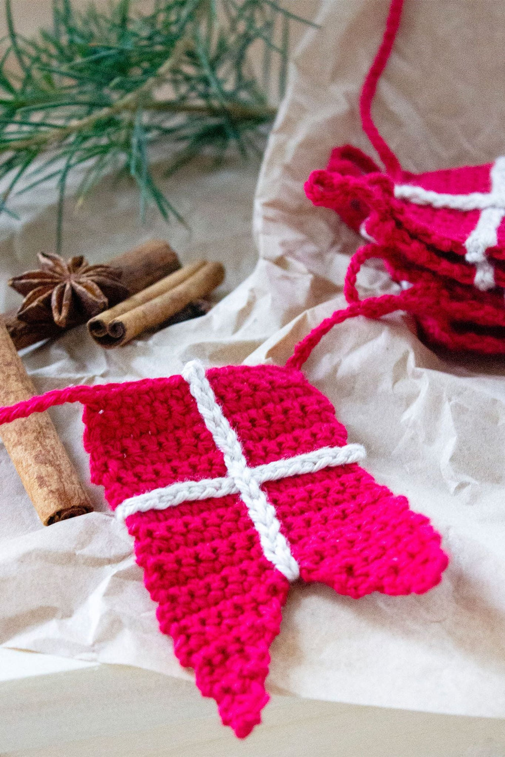 De flot designet splitflag er med til at skabe et moderne flag, som passer perfekt til juletræet såvel som fødselsdagsbordet. Disse hæklede flag er lavet i Mayflower Cotton 8/4, som er den traditionelle bomuldskvalitet fra Mayflower, som er kendt for sin høje kvalitet.
