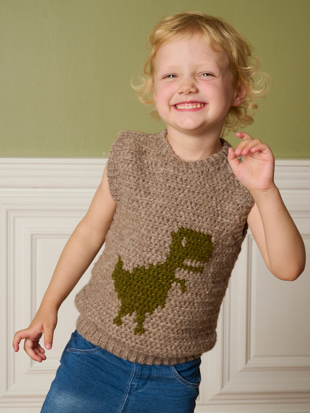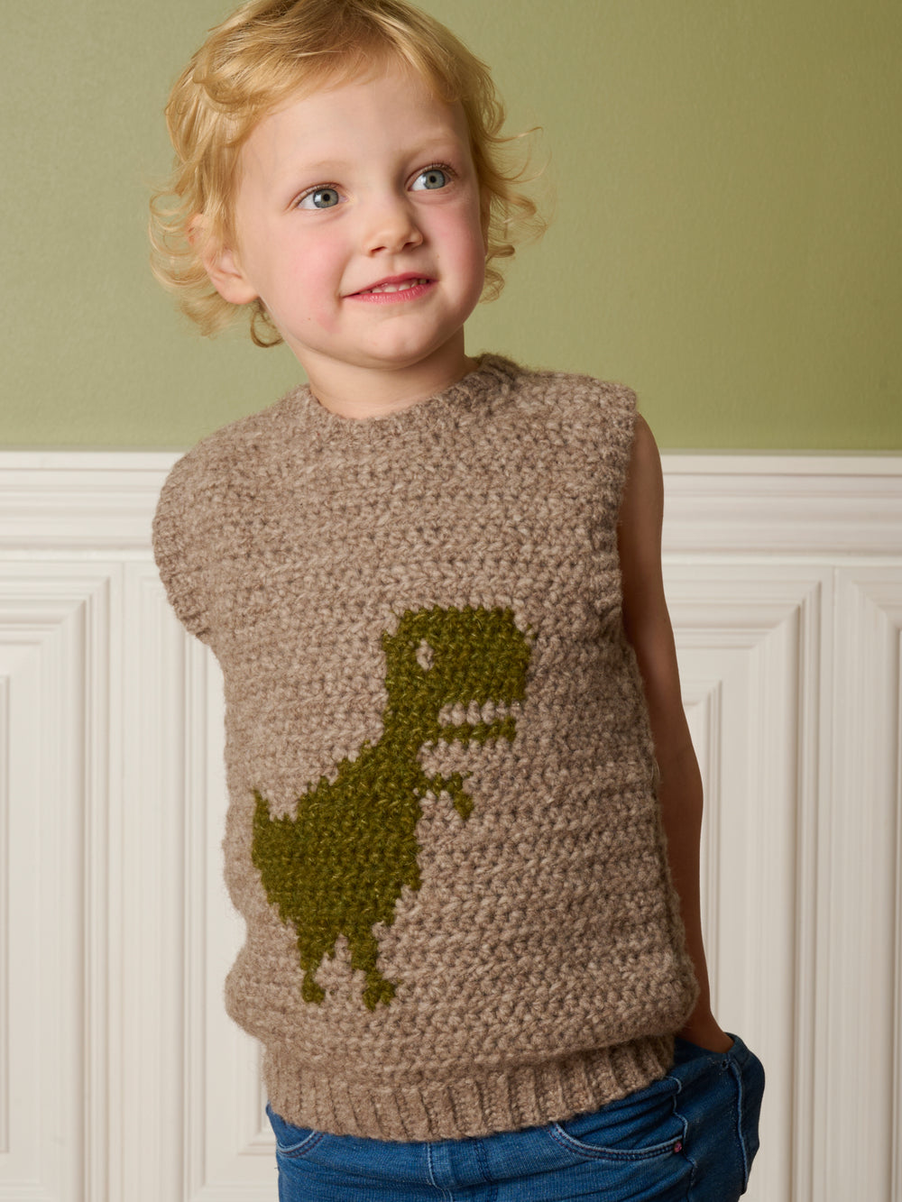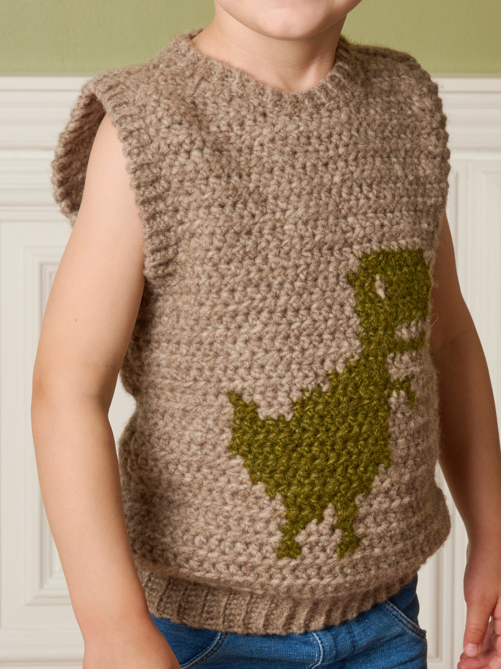 Hæklet slipover med dinosaur