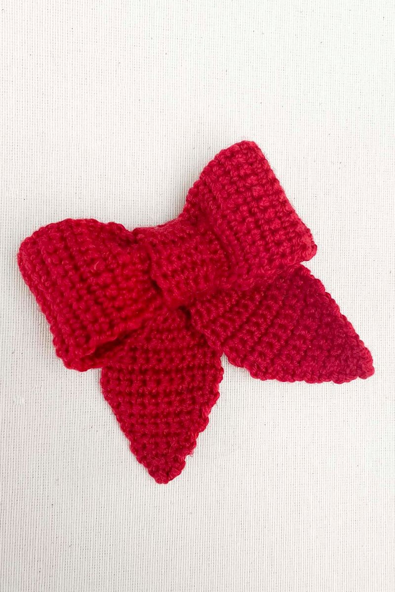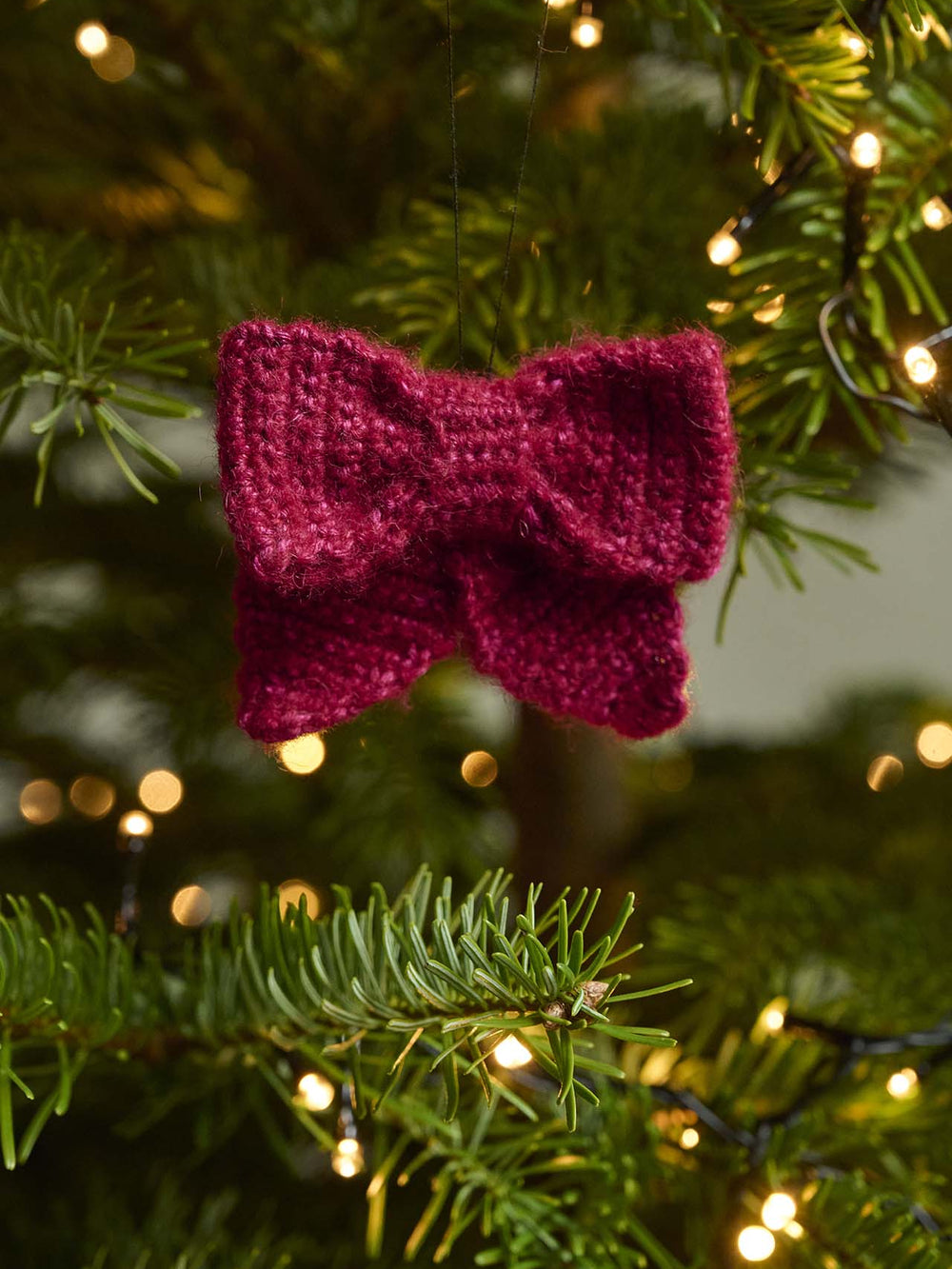 Fin, hæklet sløjfe, som har et enkelt design. Opskriften er begyndervenlig, og resultatet er virkelig fint. Sløjfen måler omkring 8 x 7,5 cm, og monteres den med en snor eller et bånd, er sløjfen oplagt som fx julepynt. Sløjfen kan også sættes på et elastik eller en spænde og bruges som hårpynt.