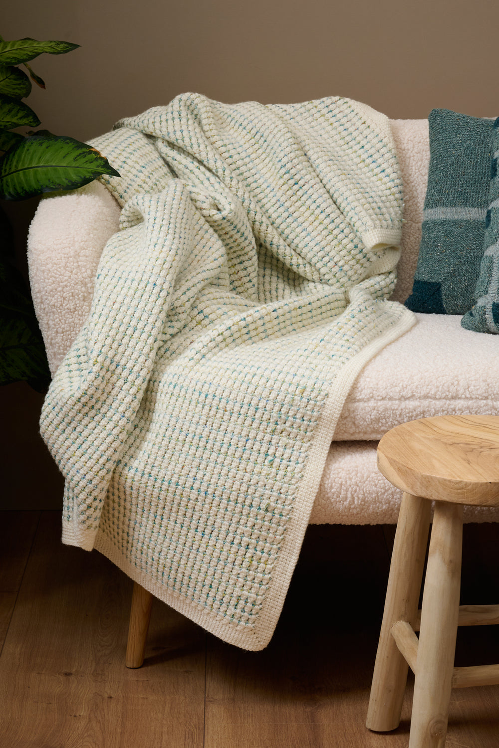 Stort, hæklet tæppe, som laves med to forskellige garnkvaliteter, hvilket giver resultatet et flot farvespil. Tæppet hækles i klyngemasker bestående af stangmasker, hvor der skiftes farve i hver række. Midten af tæppet hækles frem og tilbage, mens kanten hækles rundt. Det færdige tæppe måler 140 x 180 cm.