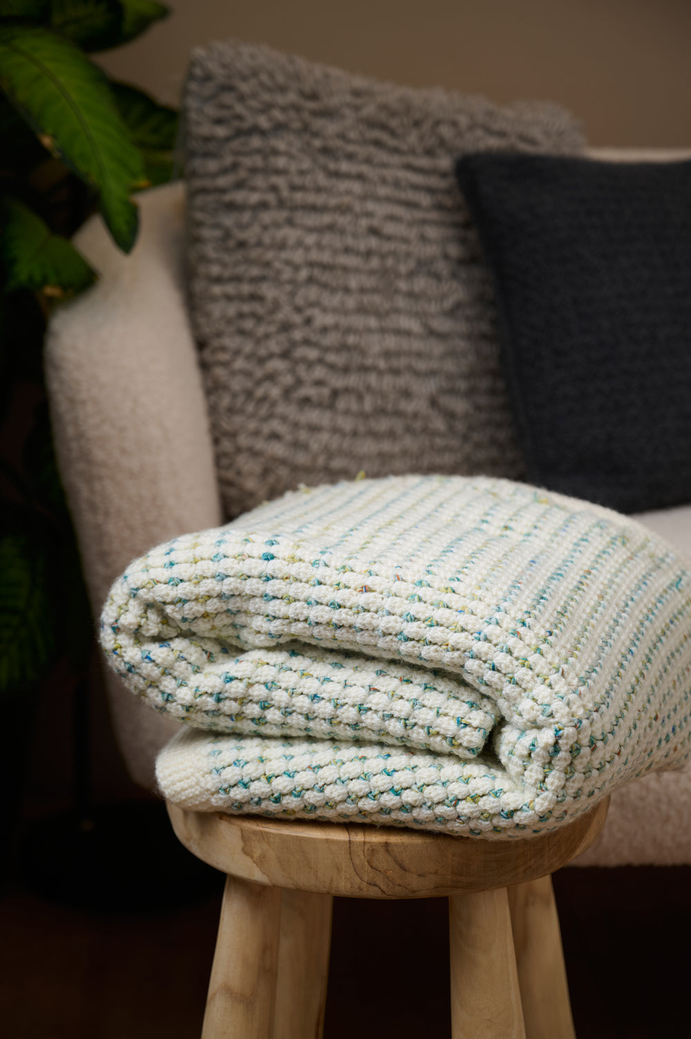 Tæppet hækles i Mayflower Anyday Grande og Mayflower Anyday Festival. Kombinationen af det ensfarvede Grande og det flerfarvede Festival giver en flot effekt, hvor du har god mulighed for at sætte dit eget præg.
