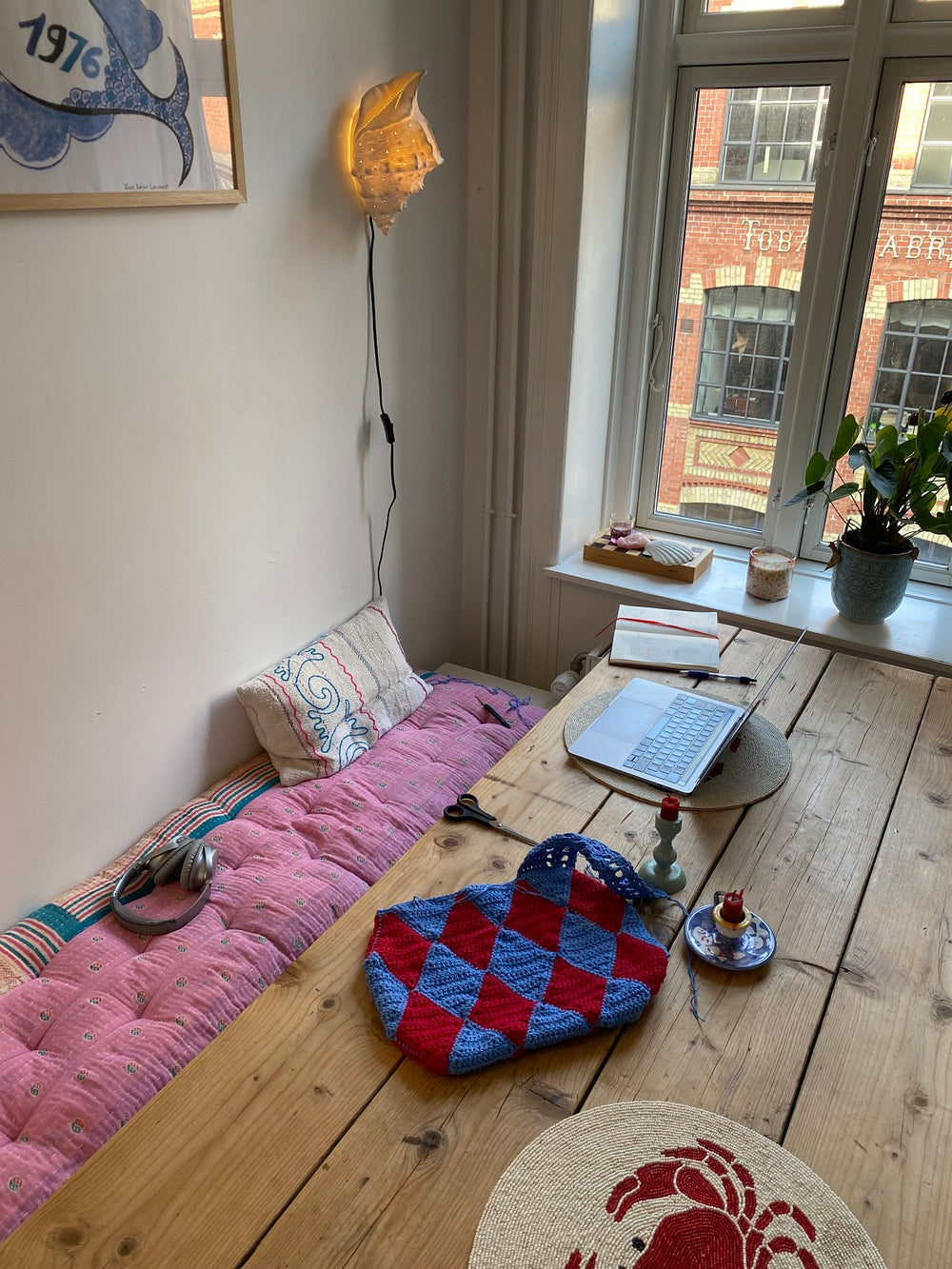 Fineste hverdagstaske som kan bruges til lige det, du har brug for. Tasken er hæklet i stangmasker, hvor der hækles ruder som til sidst monteres.