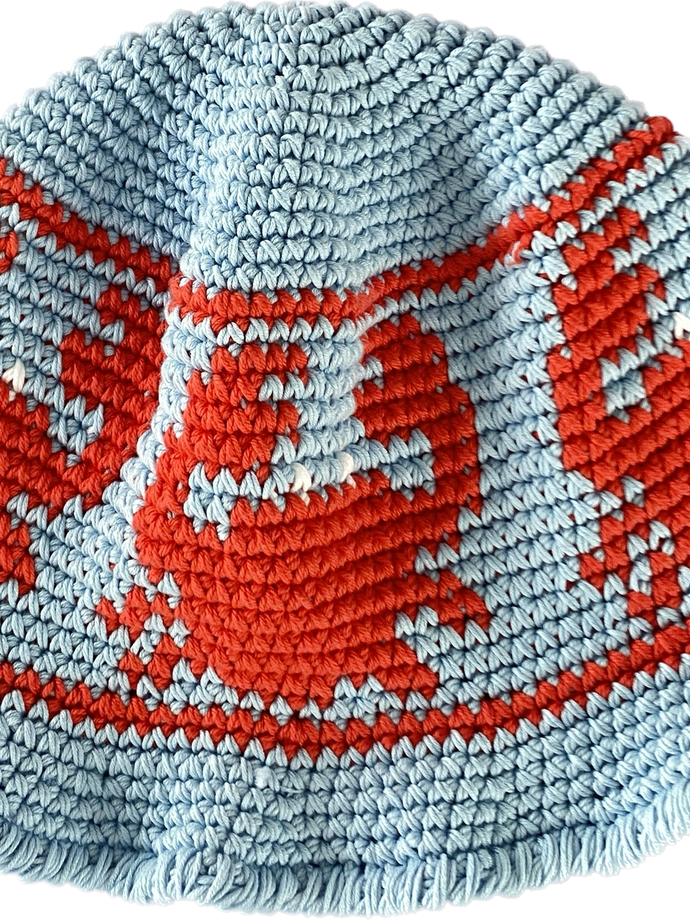 Hæklet bøllehat med krabbemønster. Denne opskrift er Dina Leas bøllehat design nr. 4
