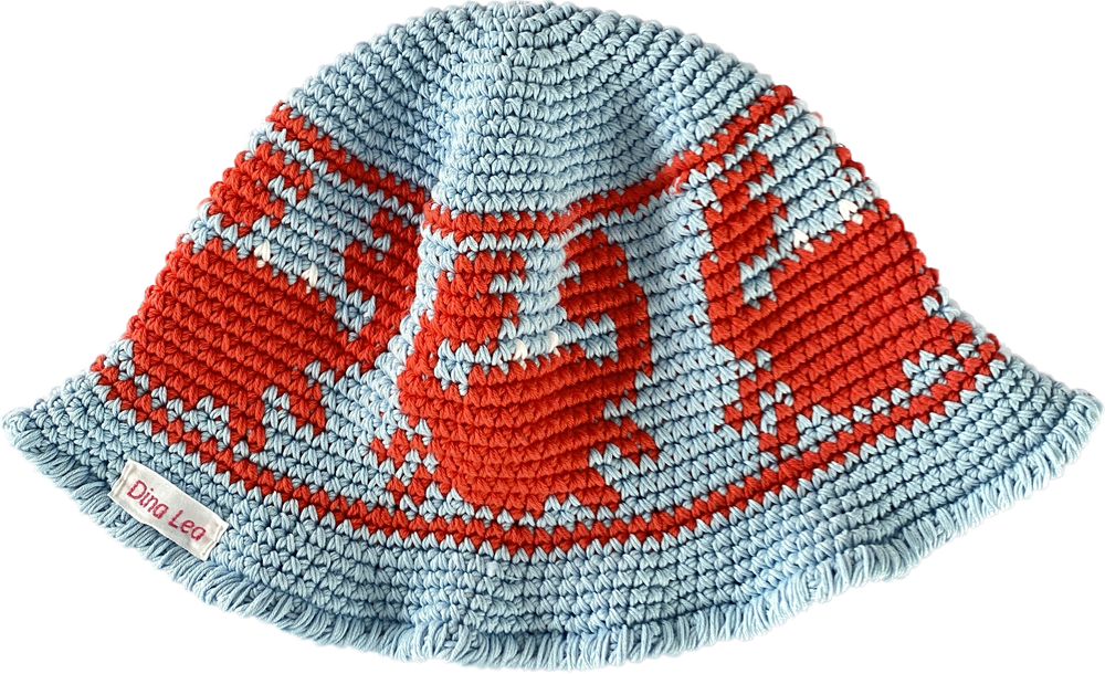 Hæklet bøllehat med krabbemønster. Denne opskrift er Dina Leas bøllehat design nr. 4