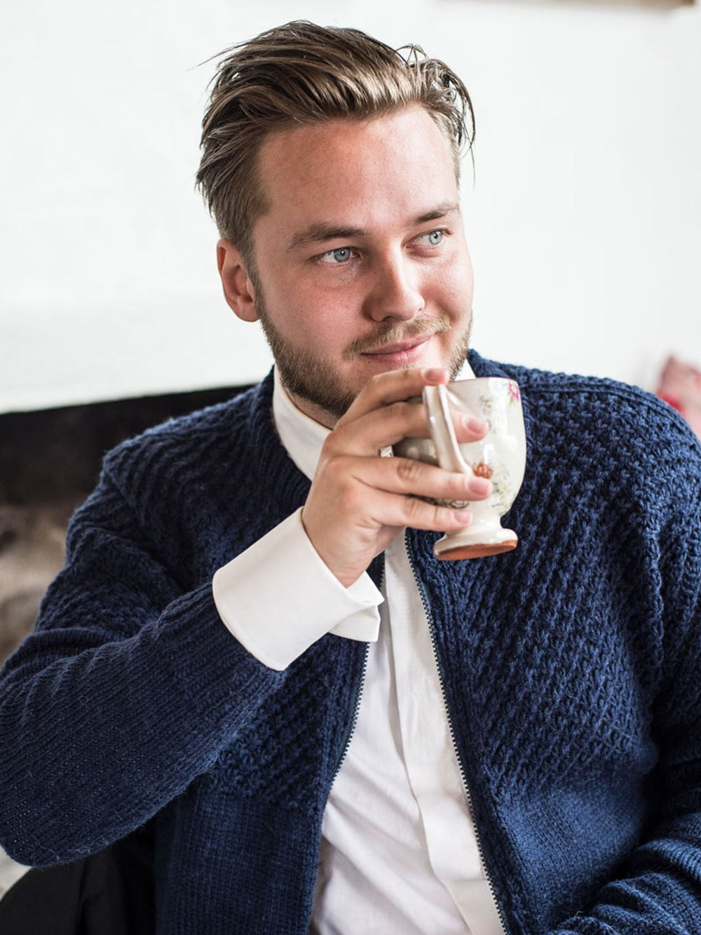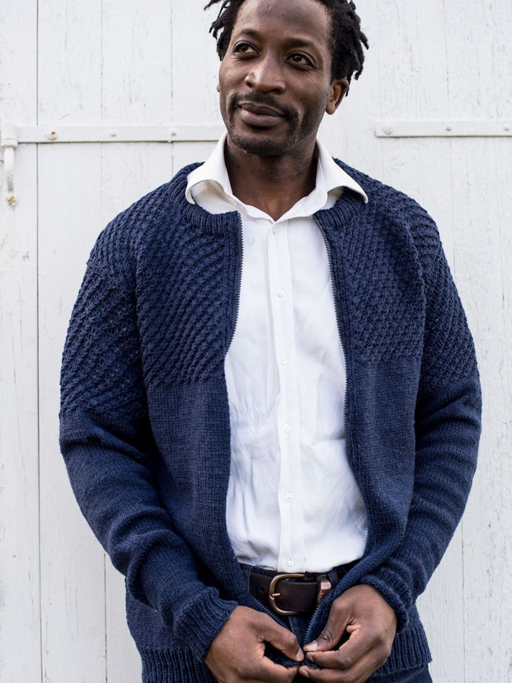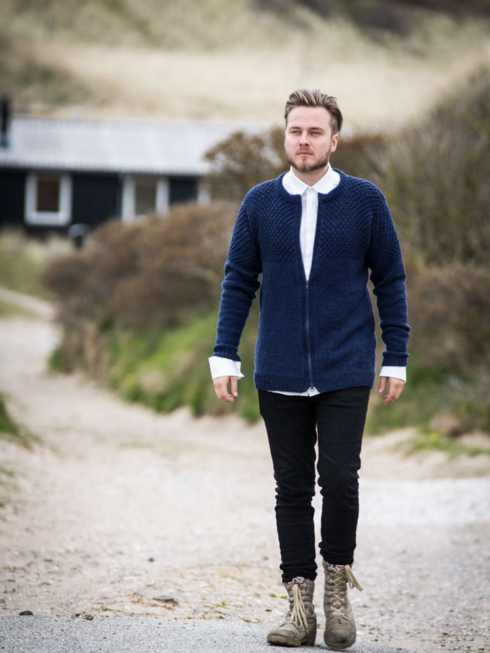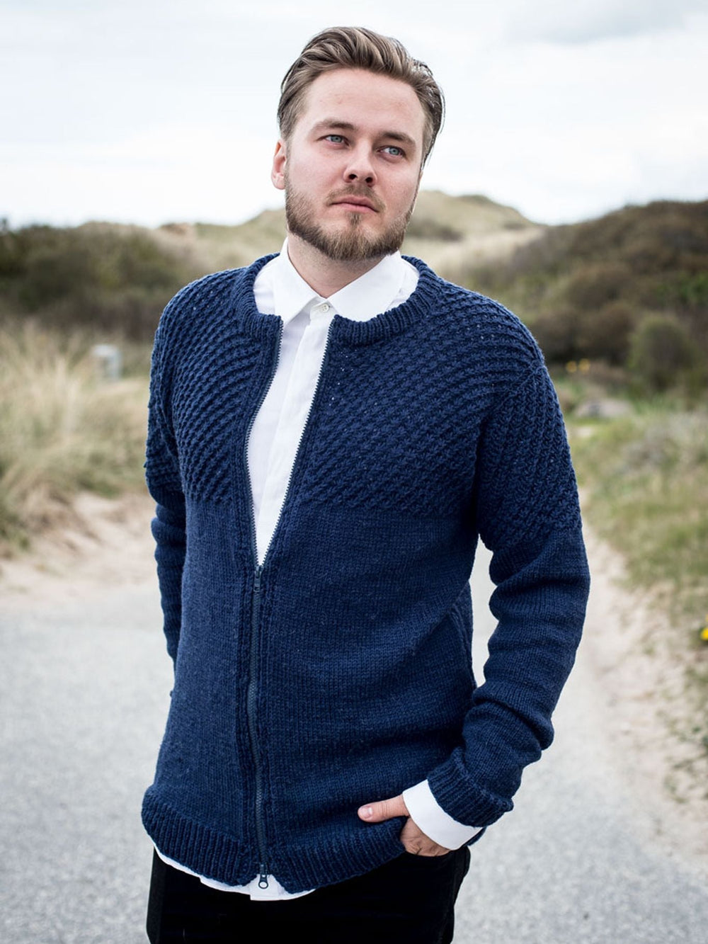 Smart cardigan med strukturmønster til herrer, som strikkes i det bløde og lune uldgarn Mayflower Easy Care Classic. Cardiganen monteres med lynlås, hvilket gør den nem at få af og på. Cardiganen er et flot alternativ til den traditionelle herretrøje med sømandsbobler.