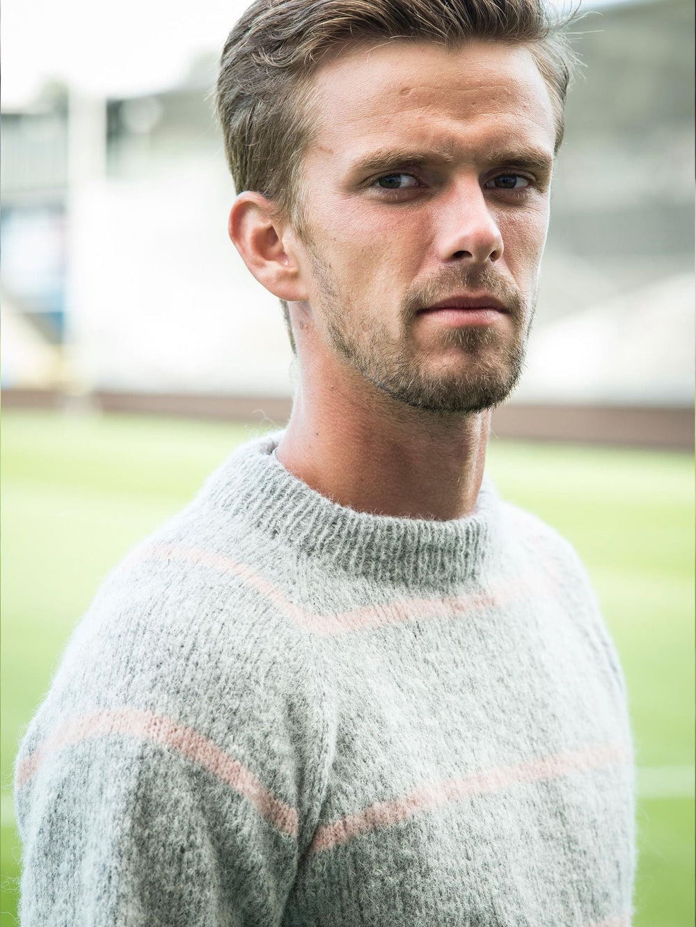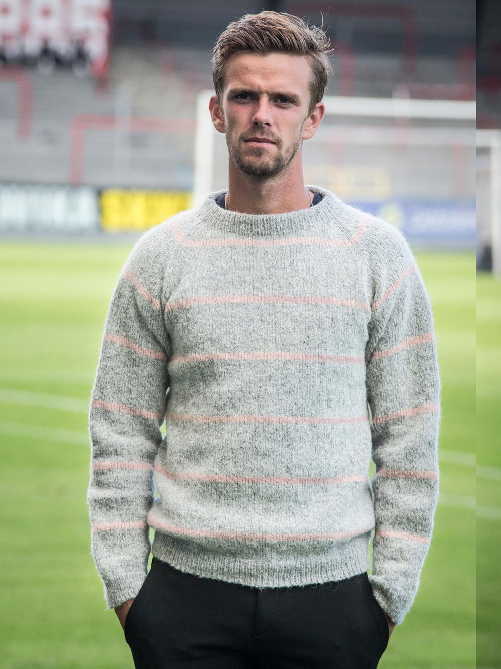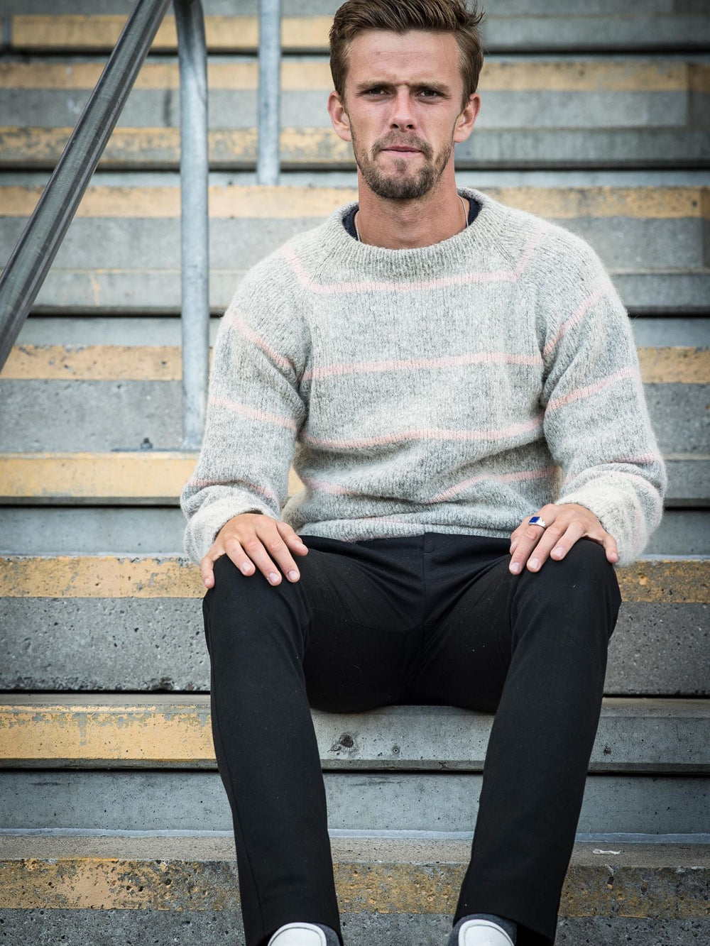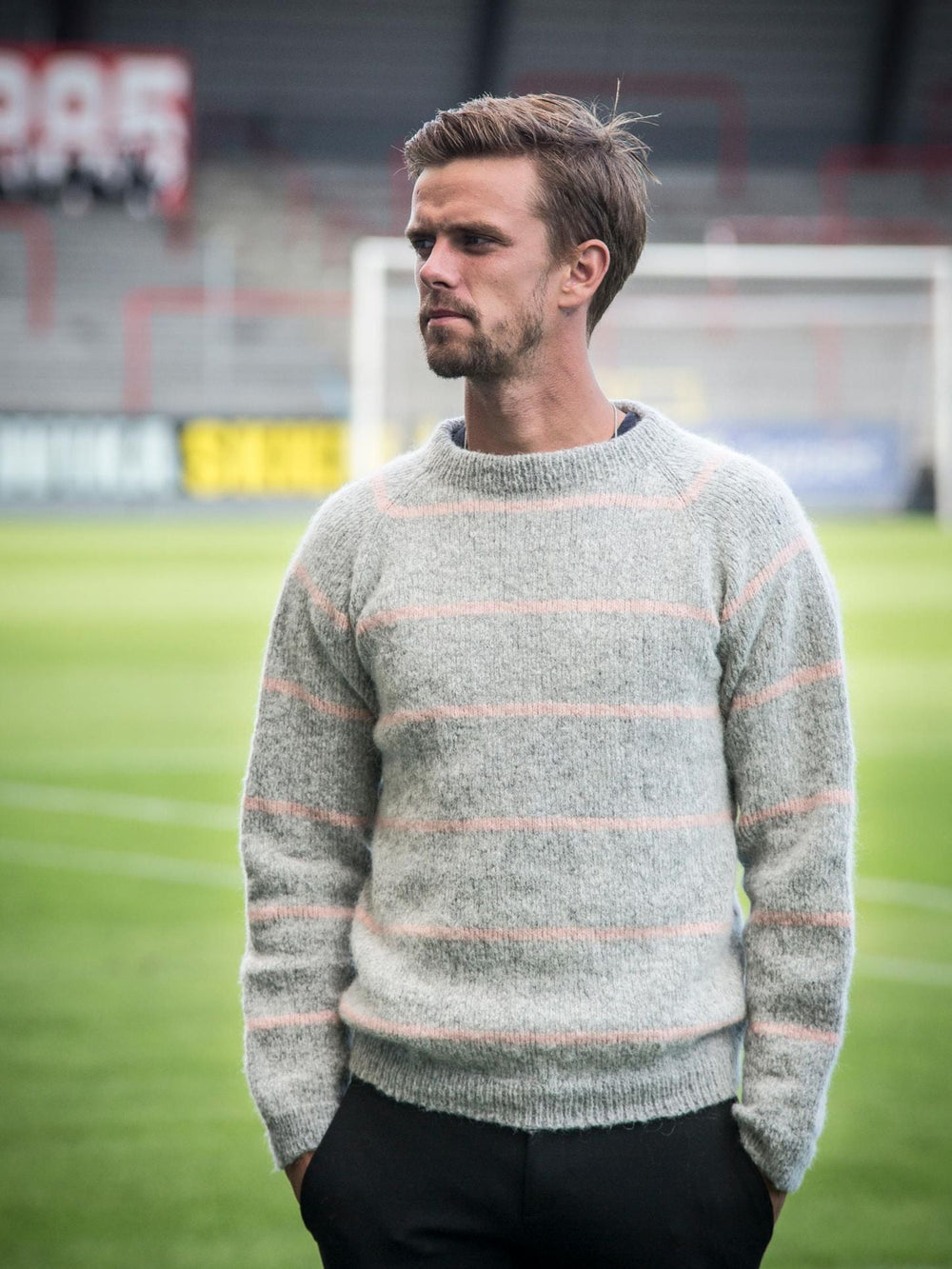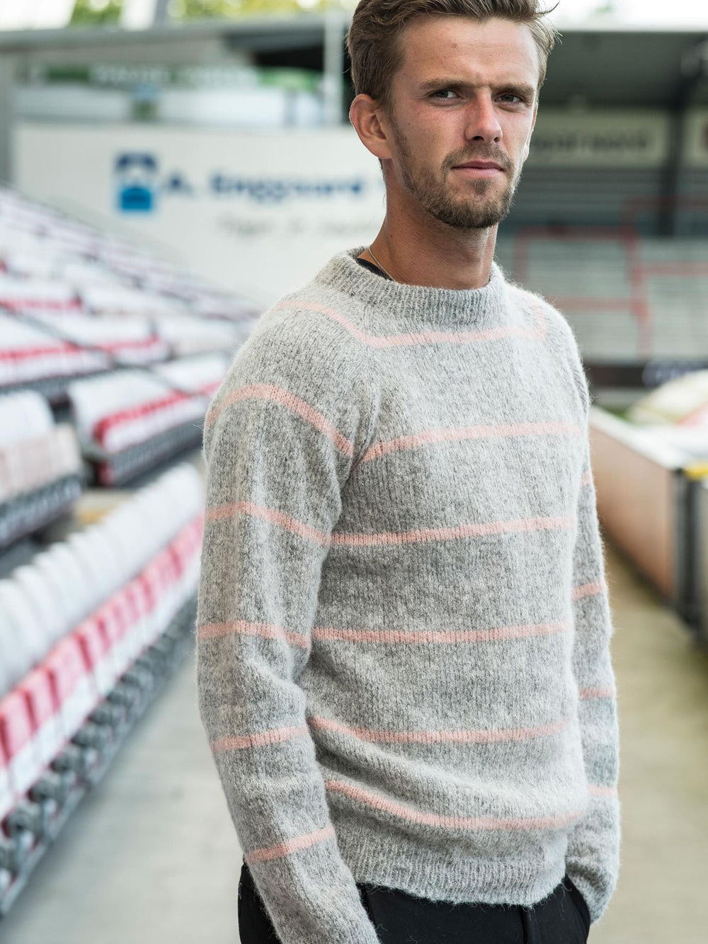 Smart og sporty herresweater med smalle striber og raglanærmer strikket i den fantastisk varme og bløde Mayflower Santiago Light.