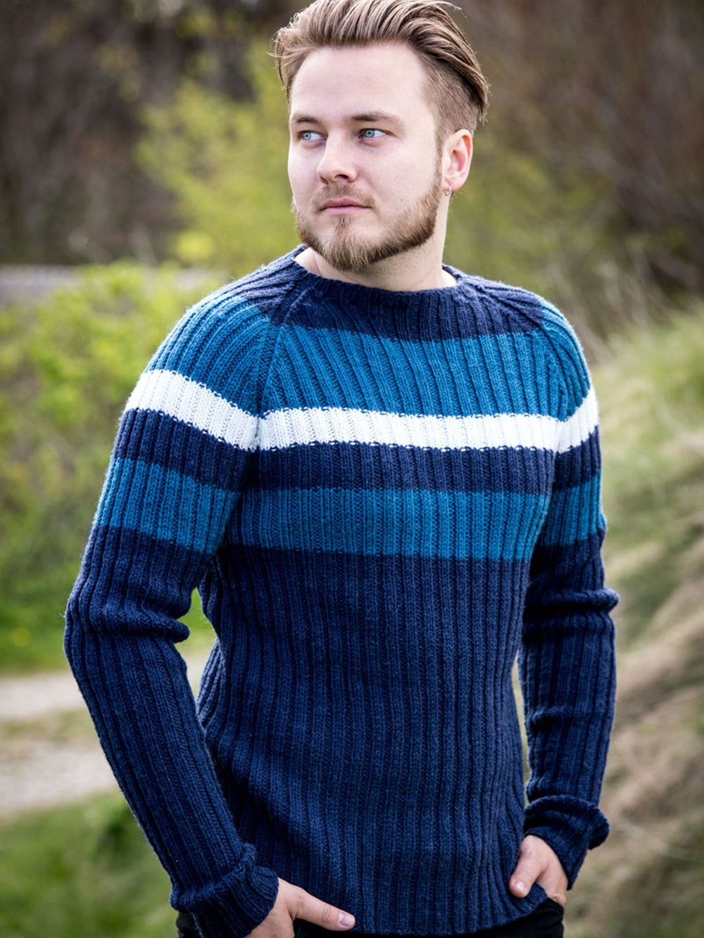 Sweateren er strikket med flotte farveskift i horisontale striber i varierende tykkelse. Striberne giver et flot farvespil, og vi har forsøgt at give nogle eksempler på farvekombinationer, som måske kan inspirere.