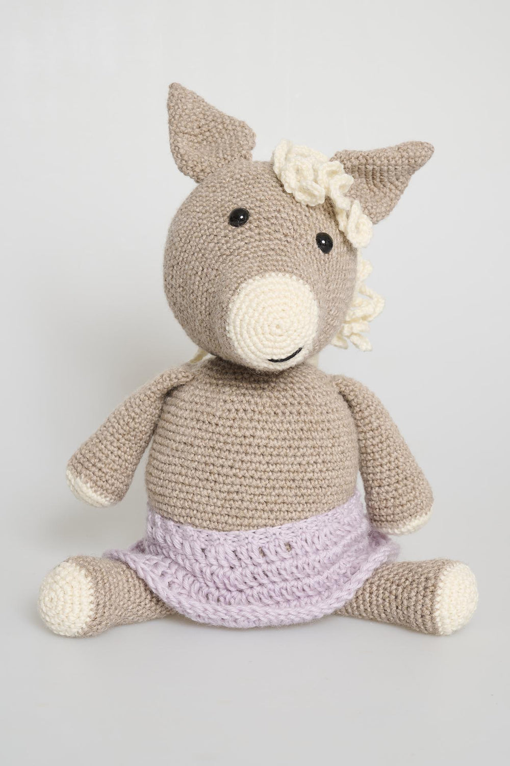 Hesten Henriette er en sød ny ven, som er klar til at flytte ind på børneværelset. Hun er hæklet i de bløde Easy Care Classic, som er ren uld, så hun er helt perfekt som krammebamse. Henriette måler 29 cm i højden, når hun sidder ned.