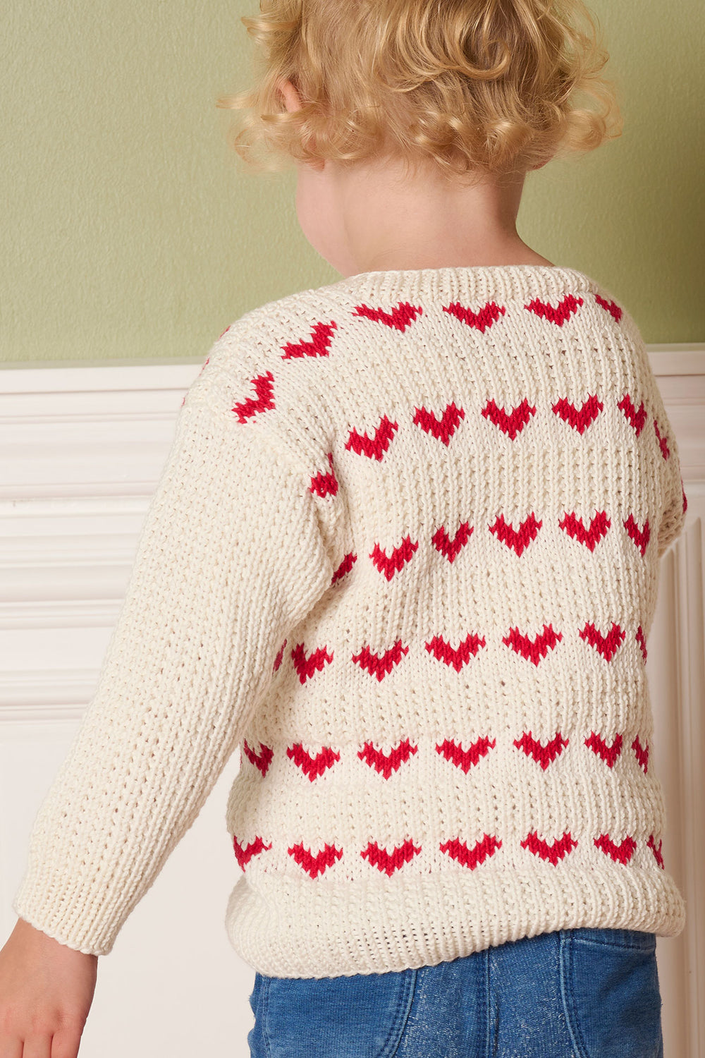Lækker bluse med fine hjerter på kroppen. Blusen strikkes nedefra og op i et fint strukturmønster i perlerib med ret- og vrangmasker, som afbrydes af striber i glatstrik, hvor der samtidig strikkes hjerter. Kanterne afsluttes i rib.