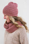 Strikket vintersæt bestående af blødt halsrør og en lækker hue. Begge strikket i et flot strukturmønster, som er meget begyndervenligt.