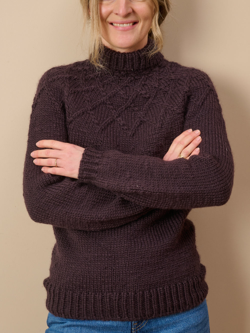 Den vamsede Interferens sweater er en skøn trøje til ekstra kolde dage. Strikket i uldgarnet Mayflower Molly Fine får sweateren nemlig en helt særlig og lækker fylde.