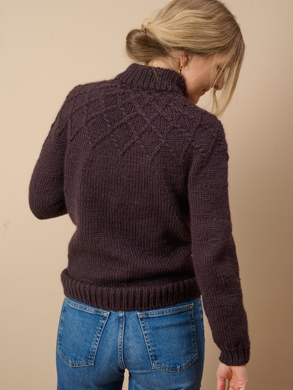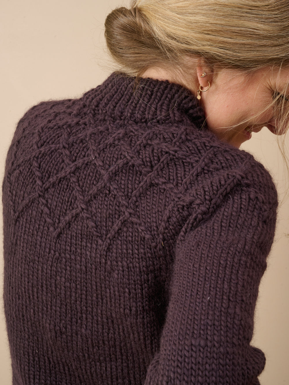 Interferens sweater strikkes oppefra og ned med et smukt og enkelt snoningsmønster i bærestykket, mens krop og ærmer strikkes i glatstrik. Der er vendepinde i nakken for bedre pasform.