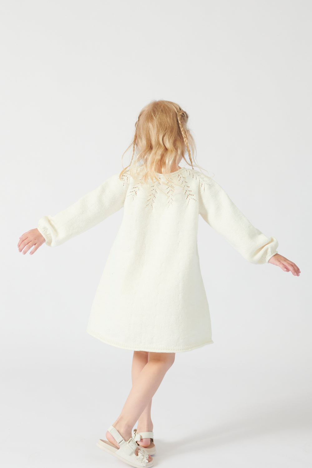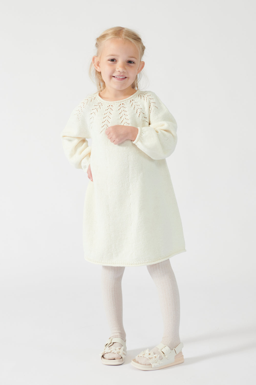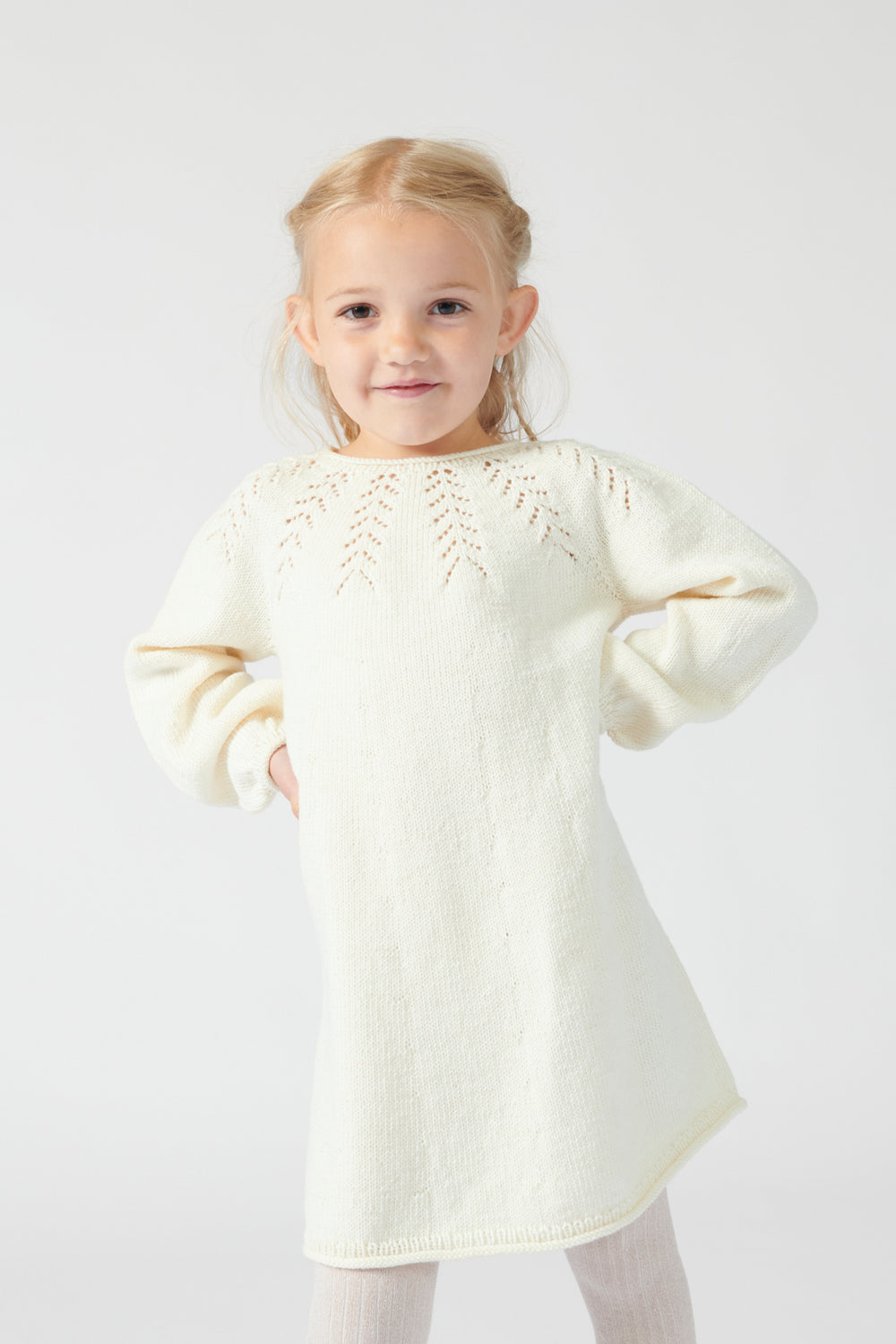 io kjole junior er strikket i Mayflower London Merino Fine, som er et blødt uldgarn, der egner sig særlig godt til beklædning. Garnet er slidstærkt og kan vaskes i maskine efter anvisningen.