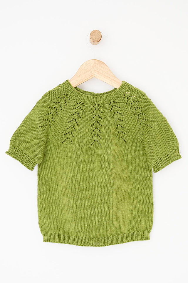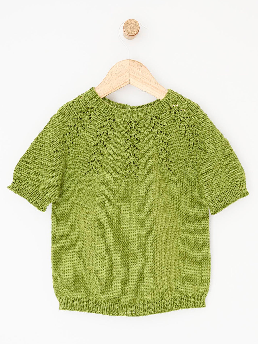 io tee er ét af vores meget populære designs, som er forholdsvis let at strikke. Derfor har vi selvfølgelig også Io tee i en juniorudgave til str. 2-12 år.
