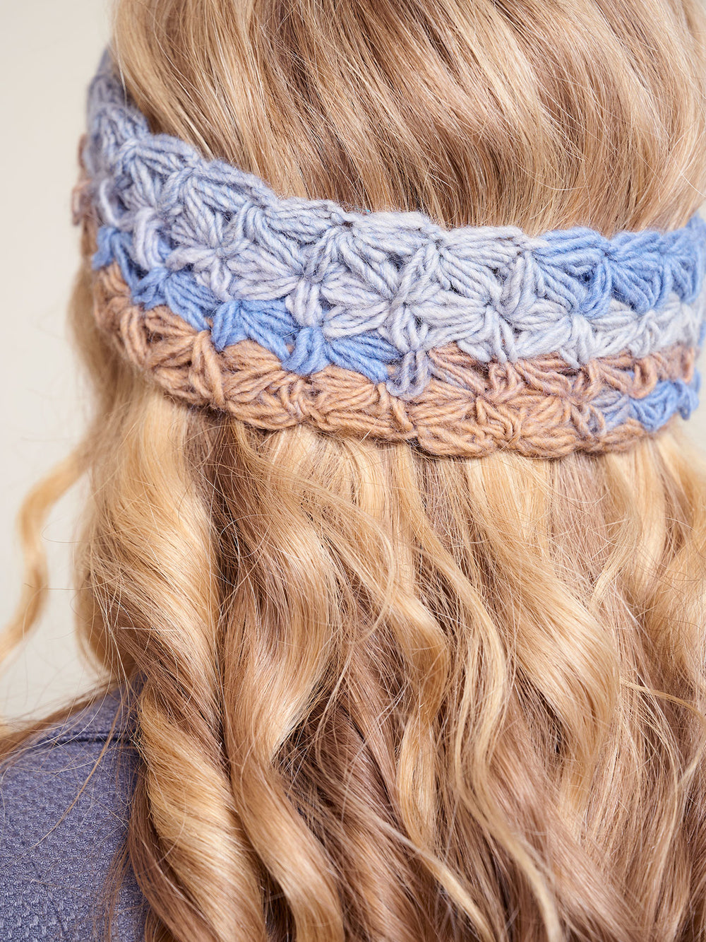 Pandebåndet hækles frem og tilbage på den lange side og syes til sidst sammen. Har du ikke prøvet at hækle blomstermønsteret før, skal du blot følge vejledningen i opskriften, ligesom du kan støtte dig til billederne.