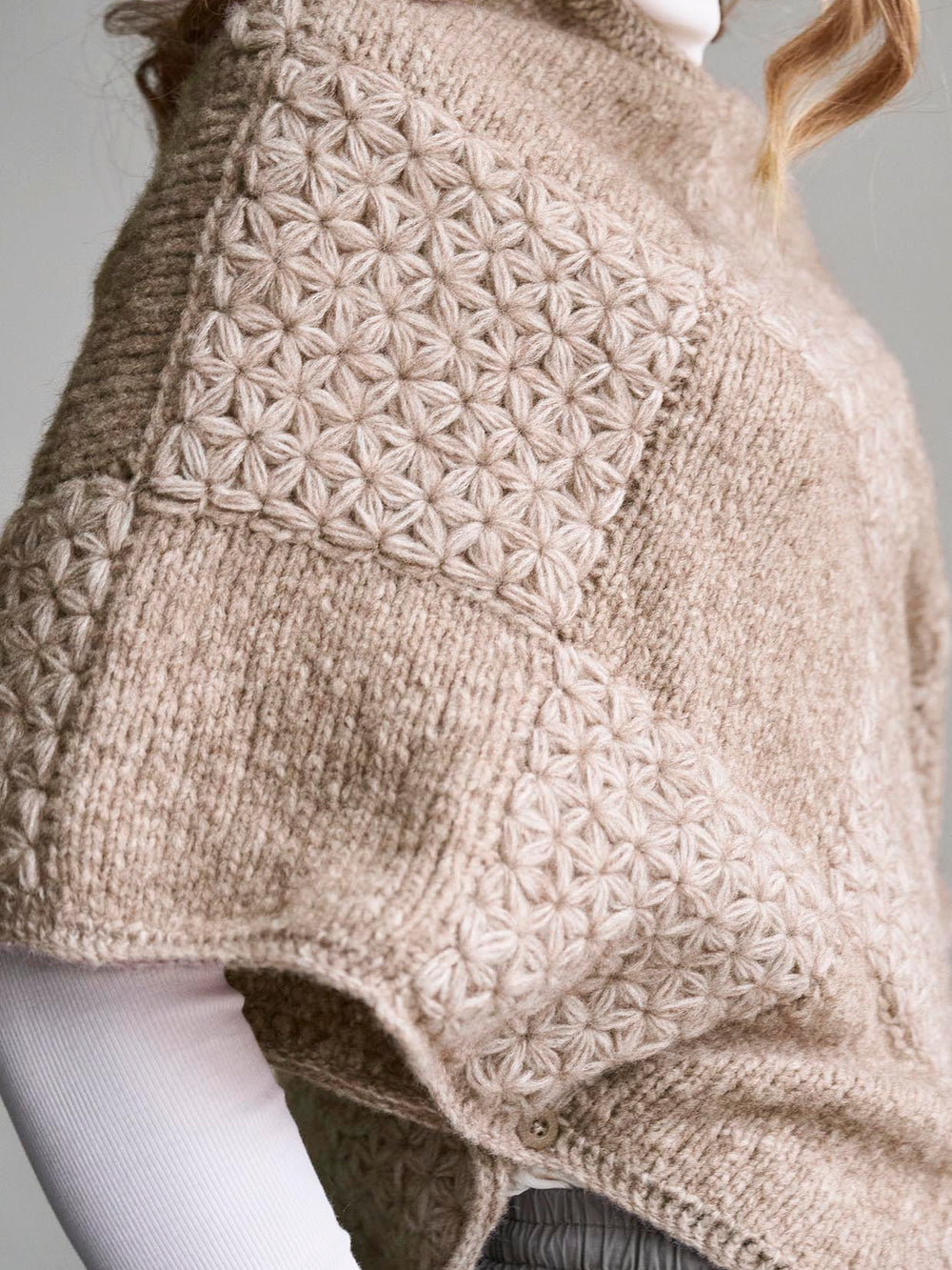 Jasmin poncho er lavet i Mayflower Santiago + Mayflower Santiago Light, og den bliver derfor virkelig blødt, lun og vamset.