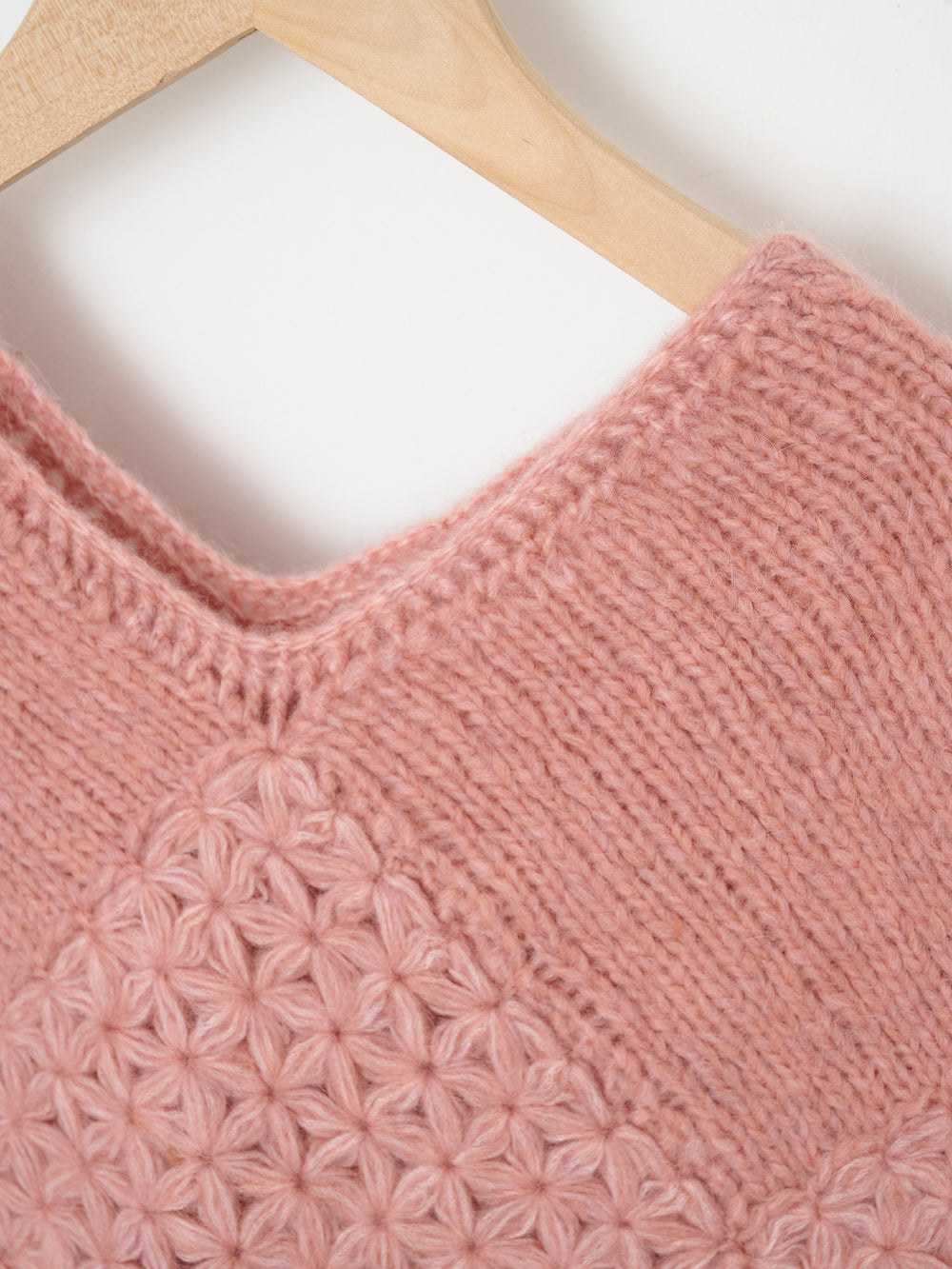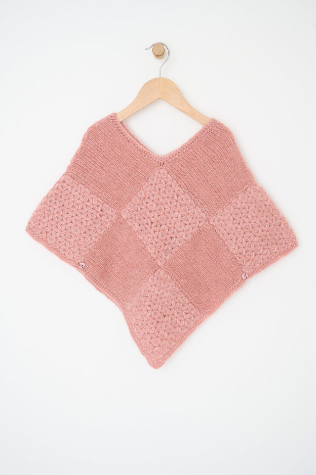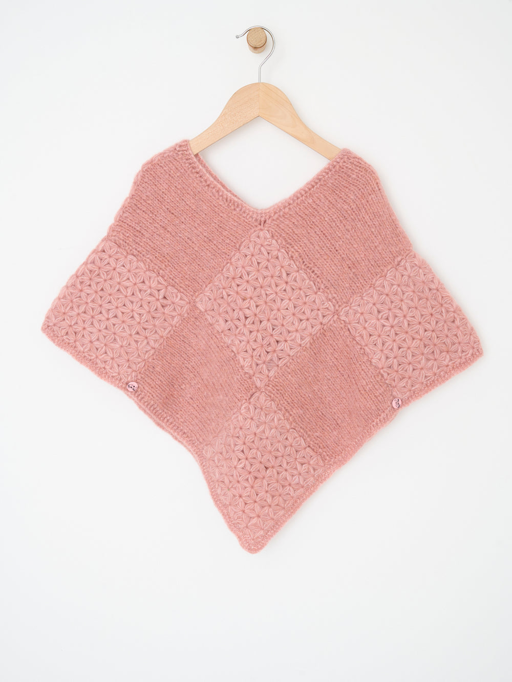 En lækker og vamset poncho, som består af både strikkede og hæklede firkanter, som til sidst sys sammen. Der er grundig vejledning til særligt de hæklede firkanter, som laves i jasmin-mønster.