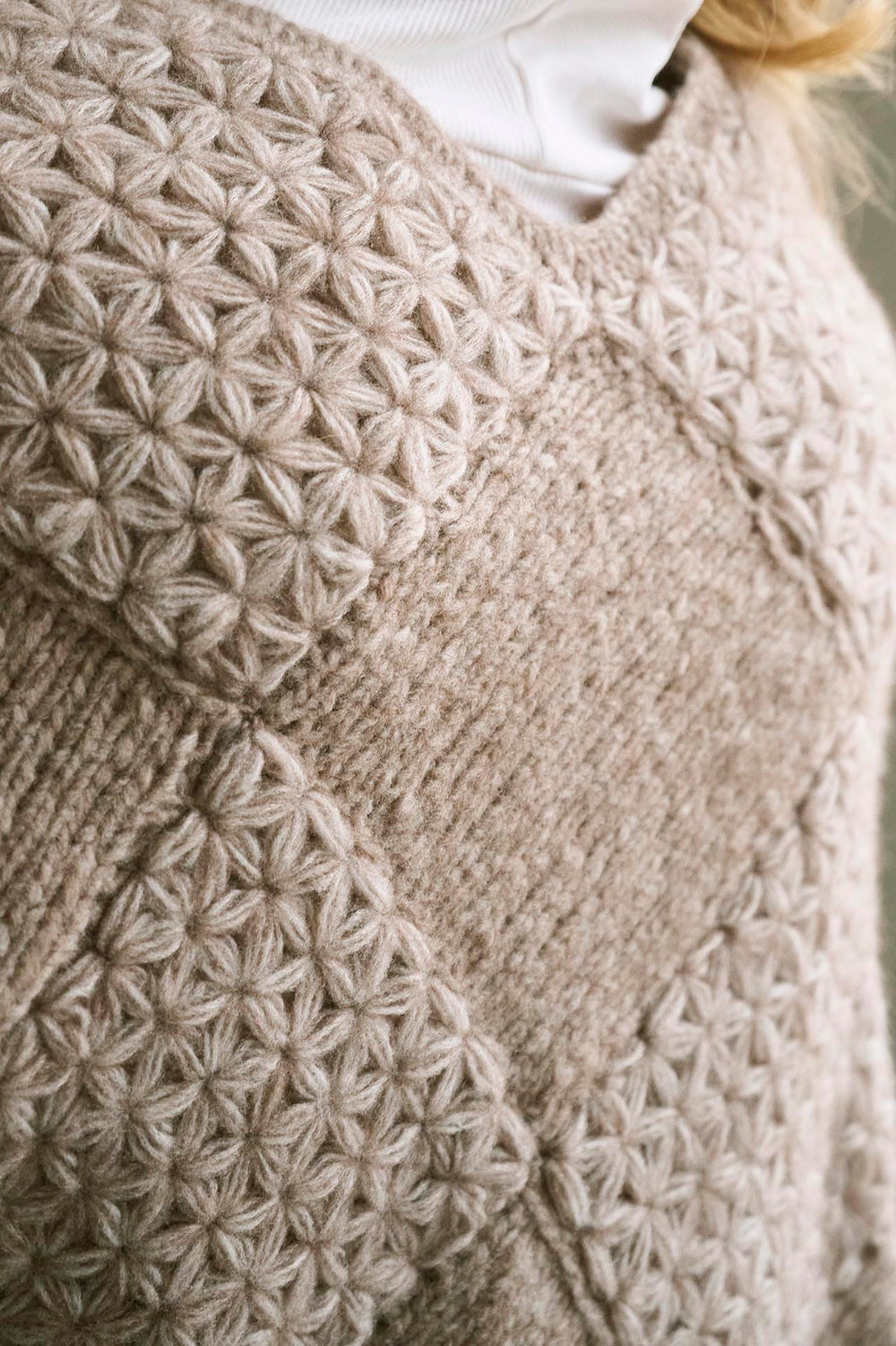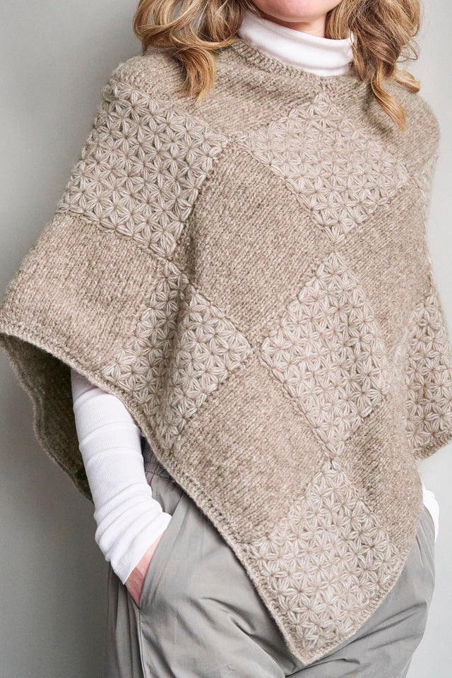 Jasmin poncho er lavet i Mayflower Santiago + Mayflower Santiago Light, og den bliver derfor virkelig blødt, lun og vamset.