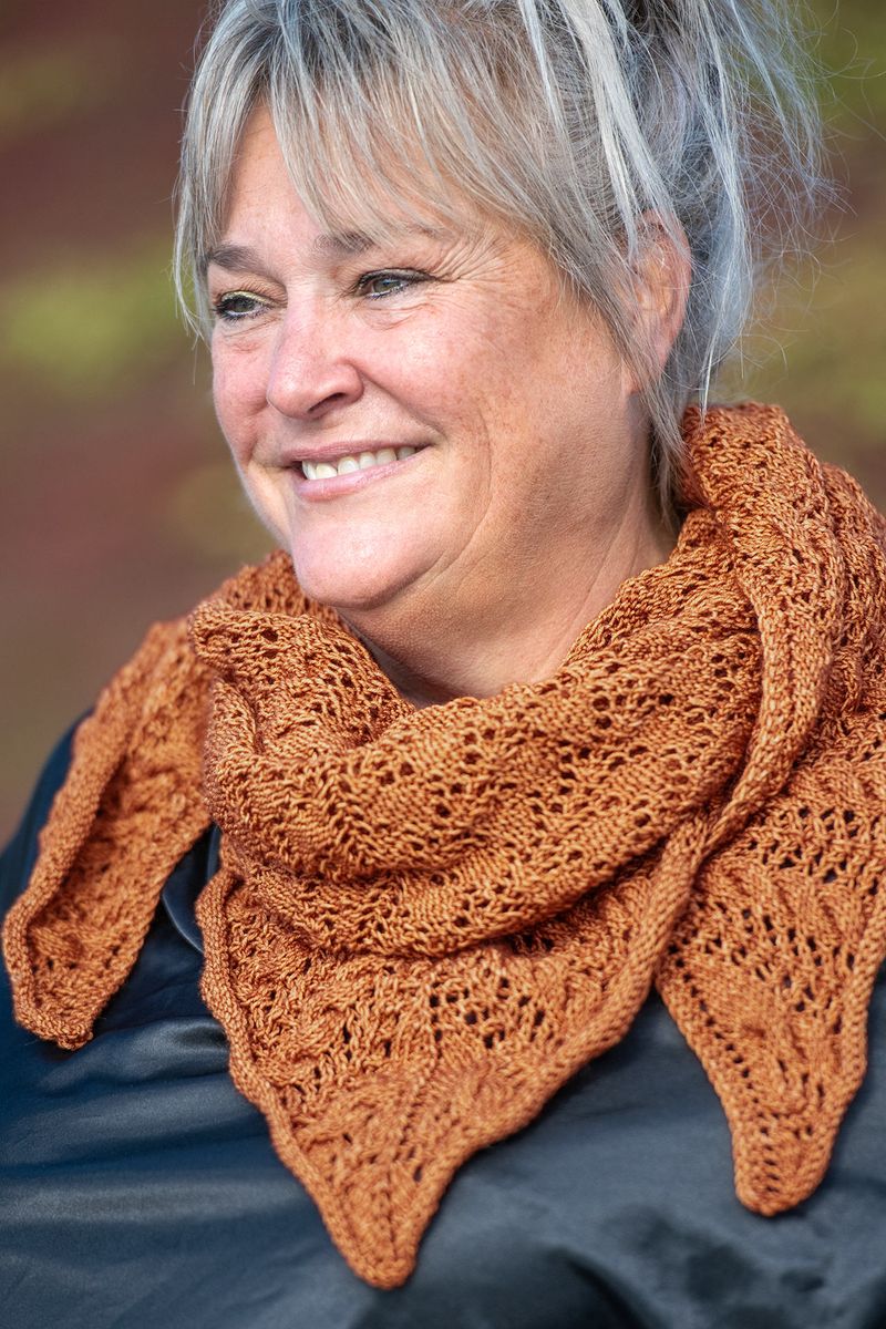 Stort, trekantet sjal, som har det smukkeste hulmønster. Mønsteret gør sjalet meget underholdende at strikke, og diagrammet i opskriften guider dig godt igennem strikkeprojektet og frem til et flot resultat.