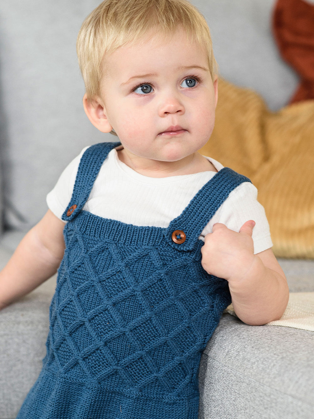 Da bukserne strikkes oppefra og ned, er det nemt at tilpasse både skridt- og benlængden til barnet, ligesom du også nemt kan tilpasse længden på selerne. Størrelserne i opskriften er udarbejdet ud fra gængse størrelsesguides, og det er derfor vigtigt, at du tager højde for overvidden på baby, når du vælger, hvilken størrelse du vil strikke.
