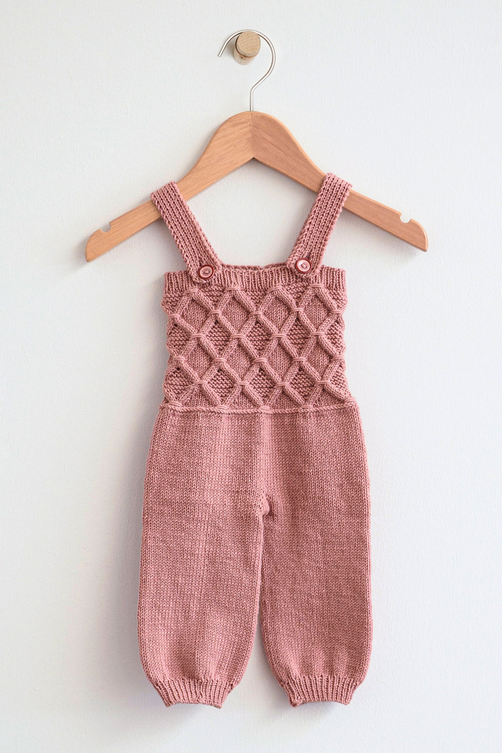 Mønsteret over brystet gør, at garnet bliver elastisk, og mønstret er derfor med til at sikre, at bukserne bliver siddende, mens de samtidig også er behagelige og ikke strammer. I glatstrikken på benene bliver strikkefastheden lidt løsere, hvilket giver mere plads og god bevægelighed til benene. En ribkant nederst på benene søger for, at bukserne ikke kravler op.