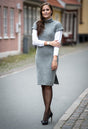 En enkel strikket kjole med en lille rullekrave og slidser i begge sider. Nem at bruge til både hverdag og fest, for den kan både bruges med højhælede sko eller mere rå støvler.