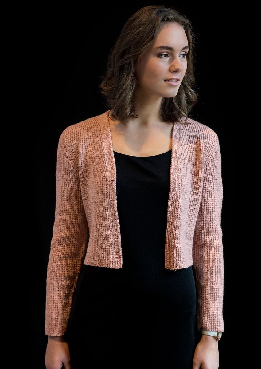 Smart kort jakke med v-hals chanel-inspireret. Denne nemme strikkede korte jakke er også for nybegyndere. Den er strikket i et helt enkelt mønster. Mayflower Easy Care er den lækre kvalitet der er brugt her til. Mayflower Easy Care er den tyndeste kvalitet i serien Mayflower Easy Care. Den er let og lækker og er af 100 % ren ny uld. Men så dejlig nem at have med at gøre at du kan vaske den i maskine og tørre den i tørretumbler så nemt og Easy som det kan blive. På den måde er den altid ren og klar til brug. Den er anvendelig til alt, såvel et par rå bukser som en smuk elegant kjole. Mayflower Easy Care finder du i et utalligt væld af farver så der er en også lige til dig.