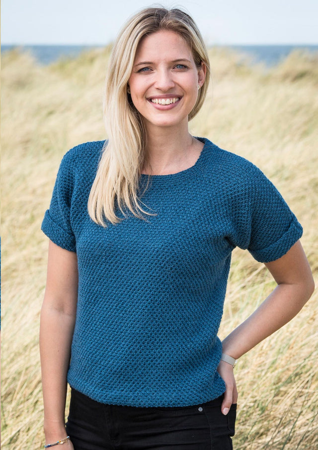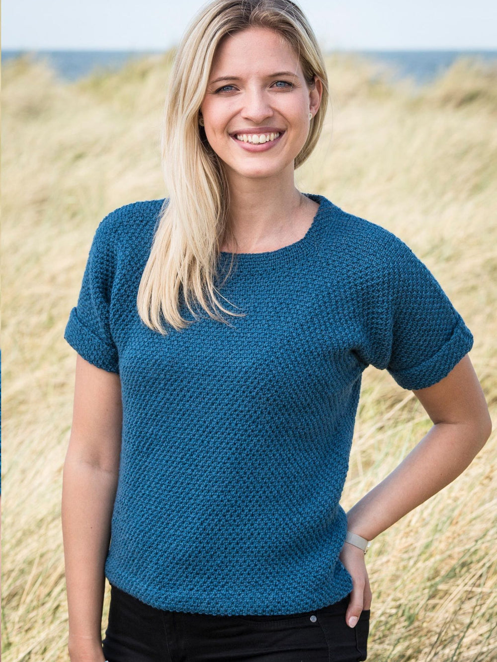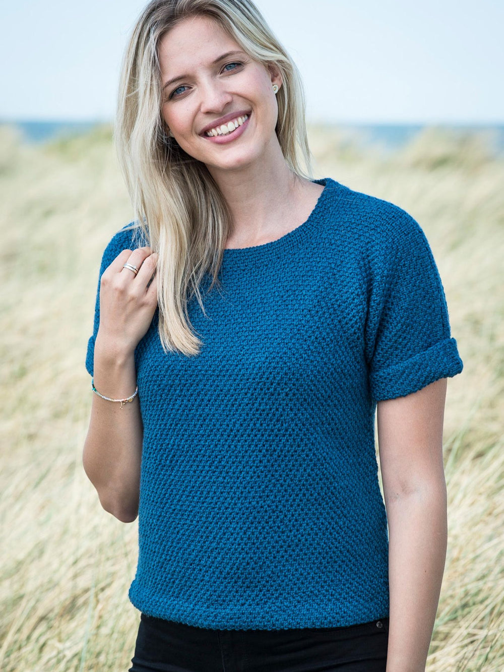 Strukturmønster giver uendeligt mange variationsmuligheder, og her er teknikken brugt til at skabe den flotteste kortærmede bluse.