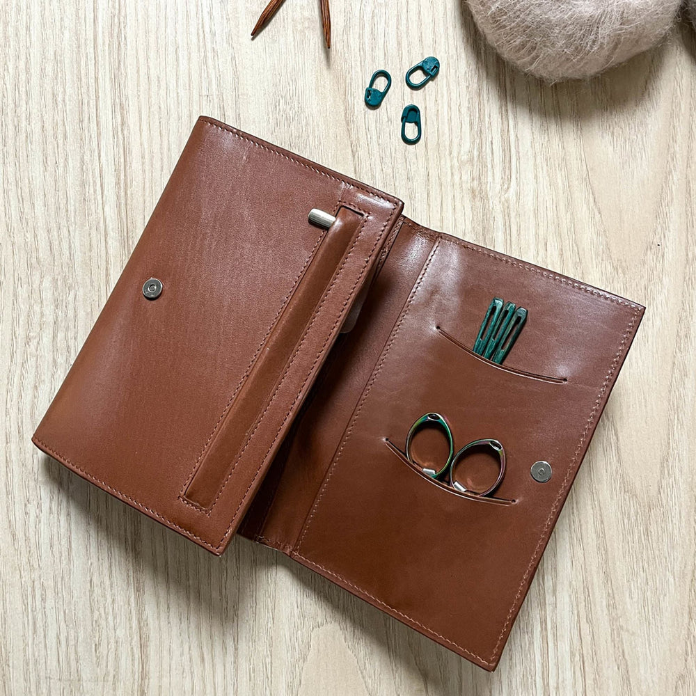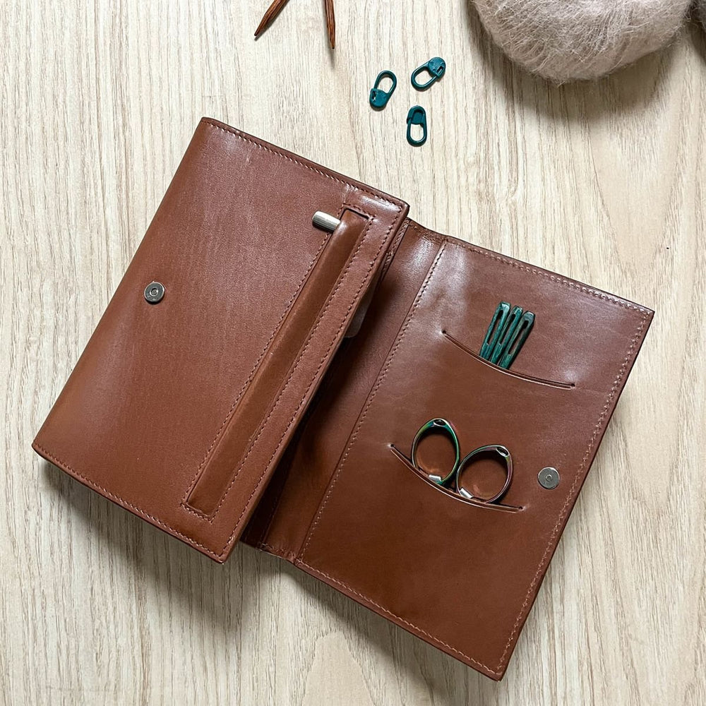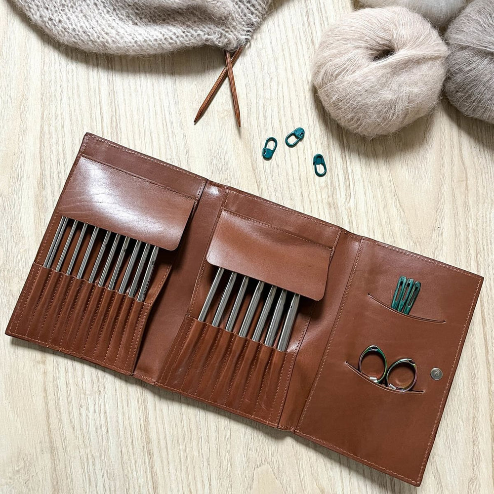 Elegant strikkeetui, som kan rumme både udskiftelige rundpinde, wirer og øvrigt strikketilbehør. Etuiet ligner ved første øjekast en stilfuld og enkel clutch, men er faktisk lækker opbevaring til dine udskiftbare strikkepinde. Etuiet fylder ikke meget i en taske og er nemt at tage med på farten.