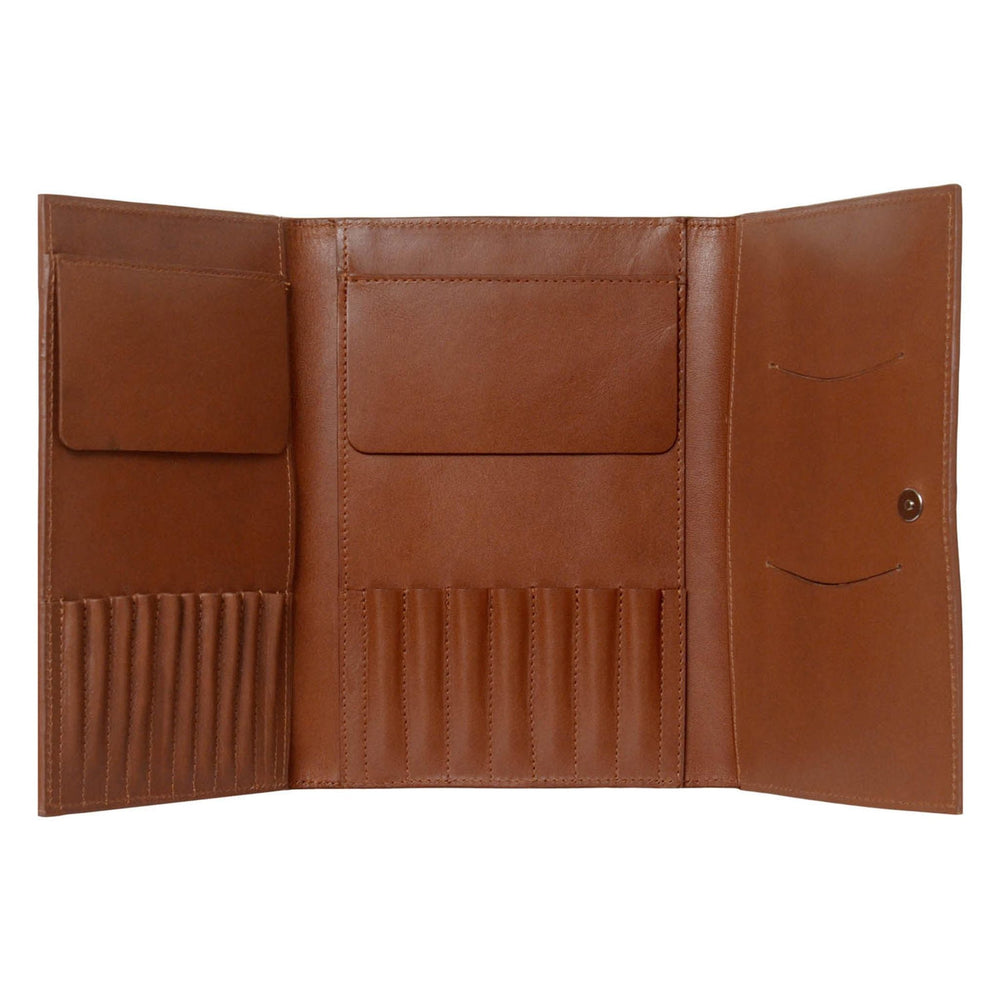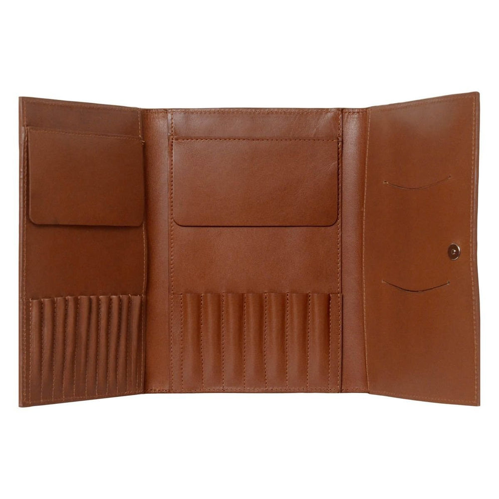 Vær opmærksom på, at læderet i et helt nyt etui er meget stramt i de syede lommer til pindene. Når du tager det i brug, vil læderet give sig. Etuiet måler 19 x 13 cm og fås også i farven sort.
