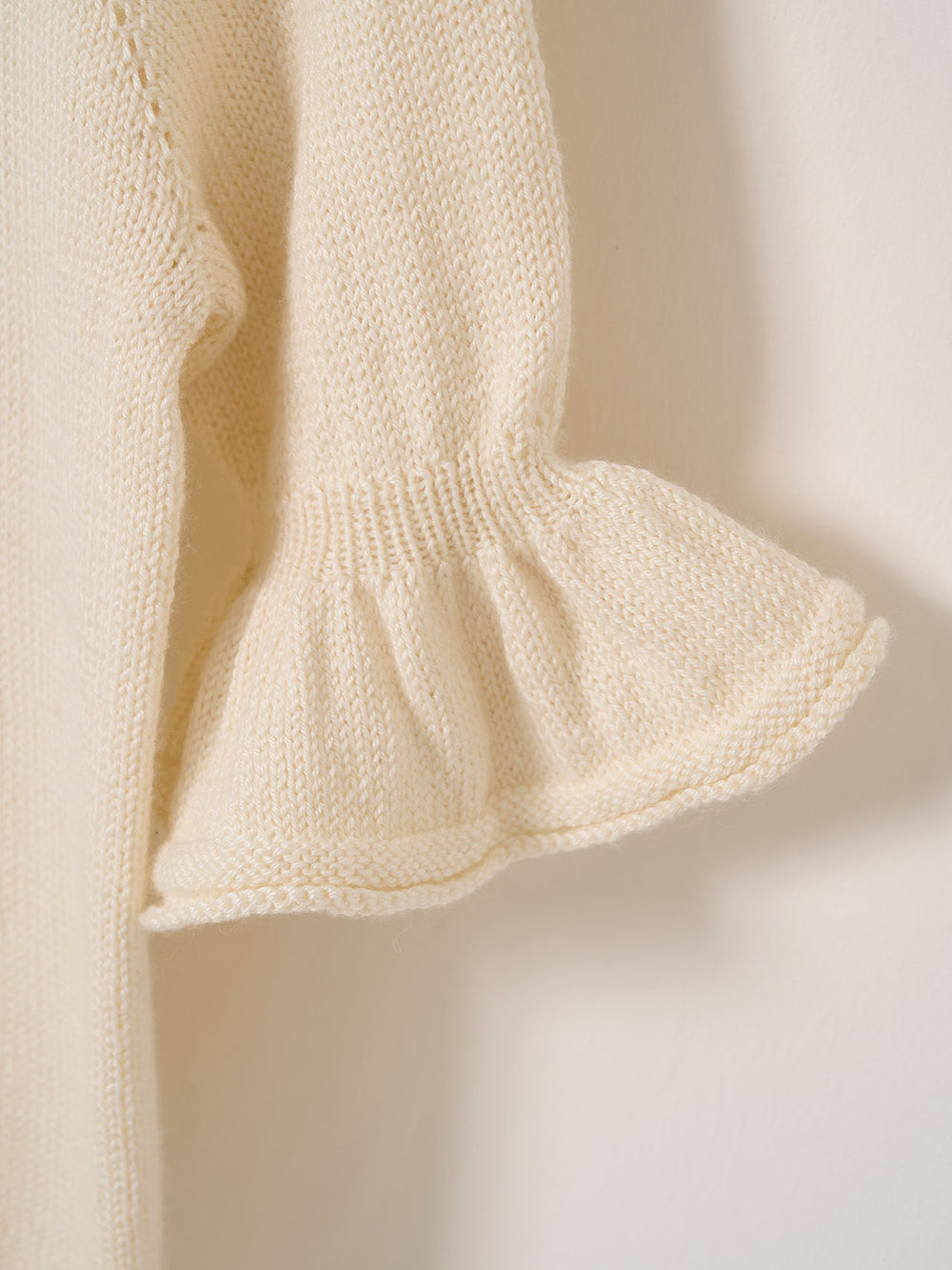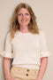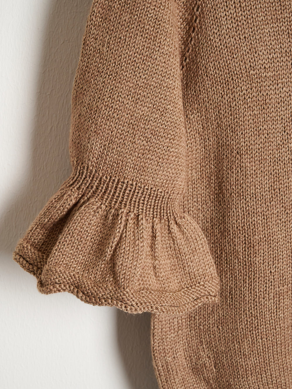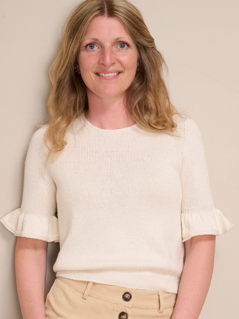 Smuk bluse med flæser på de 3/4-lange ærmer. Leonora tee strikkes oppefra og ned med rund hals og raglanudtagninger. Leonora tee er virkelig blød og føles utrolig let og behagelig at have - også om sommeren.