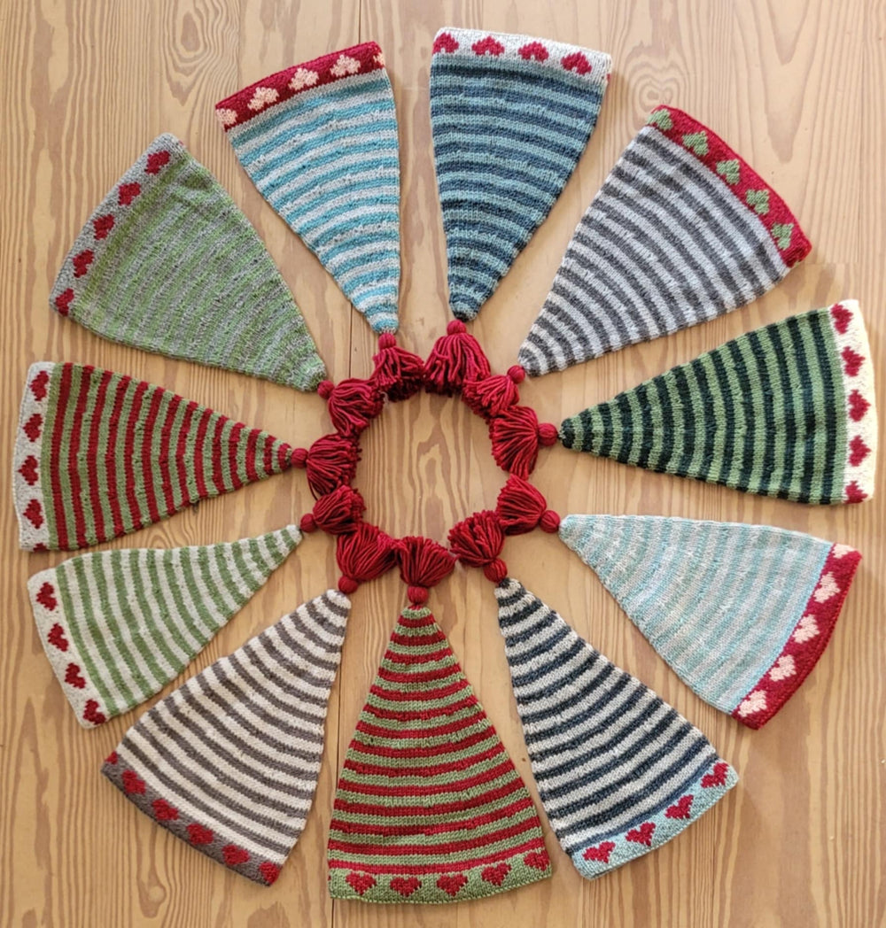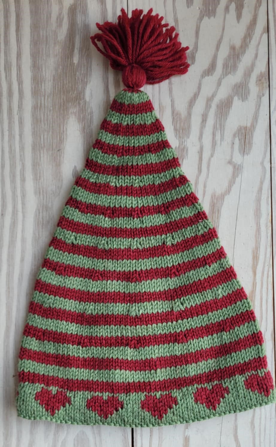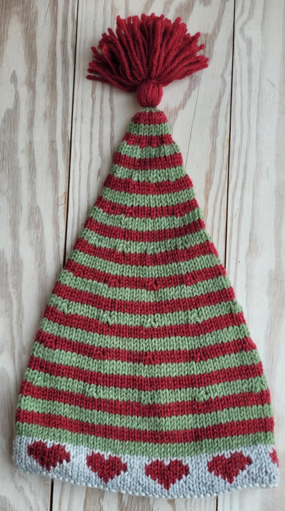 LF18 - Stribet nissehue med hjerterbort Opskrift - PDF er restordret og afsendes så snart det er tilbage på lager.