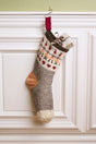 Stor julesok med nisseranke i brune og rødlige farver. Julesokken måler ca. 17 x 47 cm.