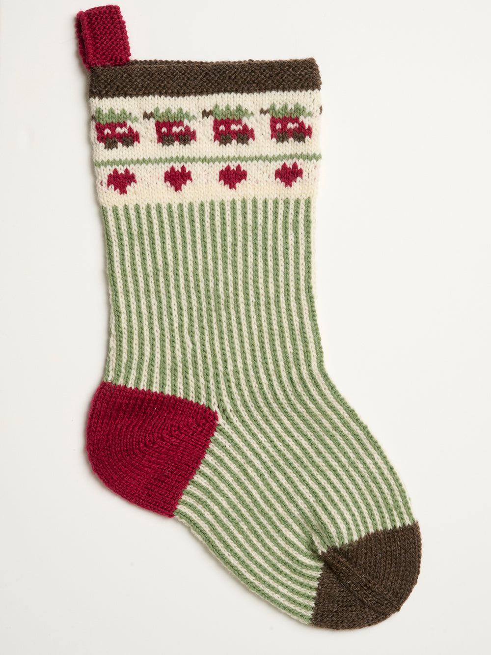 Sokken strikkes på pind 4 mm i det bløde uldgarn Mayflower Easy Care Classic. Julesokken kan også strikkes i det tyndere Easy Care eller det tykkere Easy Care Big, og julesokken bliver derfor enten mindre eller større.