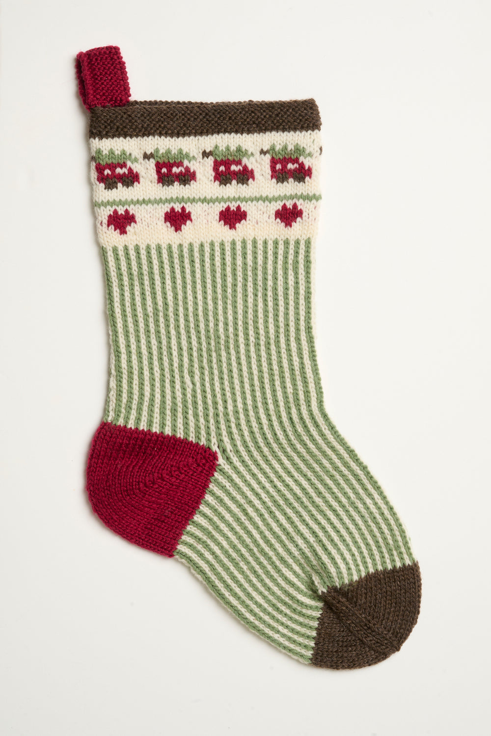 Sokken strikkes på pind 4 mm i det bløde uldgarn Mayflower Easy Care Classic. Julesokken kan også strikkes i det tyndere Easy Care eller det tykkere Easy Care Big, og julesokken bliver derfor enten mindre eller større.