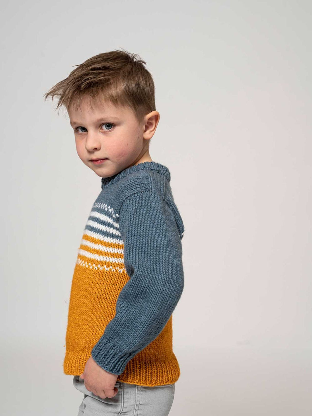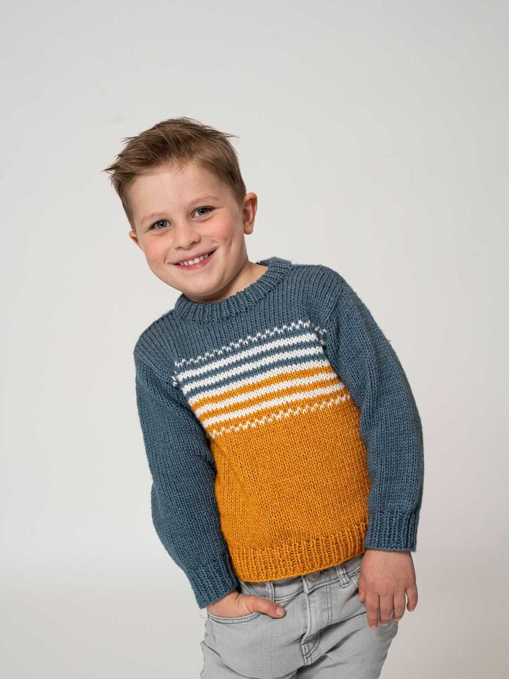 Lille Tuk sweater er strikket i Mayflower Venezia, som er en blanding af bomuld og skøn merinould. Det luksuriøse garn giver en meget behagelig sweater, som også er blød og perfekt til sart barnehud, og sweateren bliver derfor en ny favorit i garderoben.
