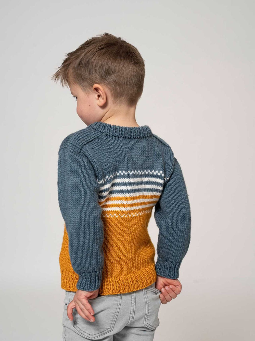 Lille Tuk sweater er en klassisk børnesweater, hvor der eksperimenteres med farvesammensætninger og mønstre i flerfarvet strik. Derfor strikkes der i to kontrastfarver, så der skabes en tydelig effekt, selvom kontrasten udjævnes en smule med en mere neutral farve i overgangen mellem de to primære farver. Sweateren er strikket oppefra og ned, hvor skuldrene strikkes først. Herefter strikkes ryg- og forstykke på skuldrene, mens der gradvist skabes et mønster i overgangen mellem sweaterens farver.