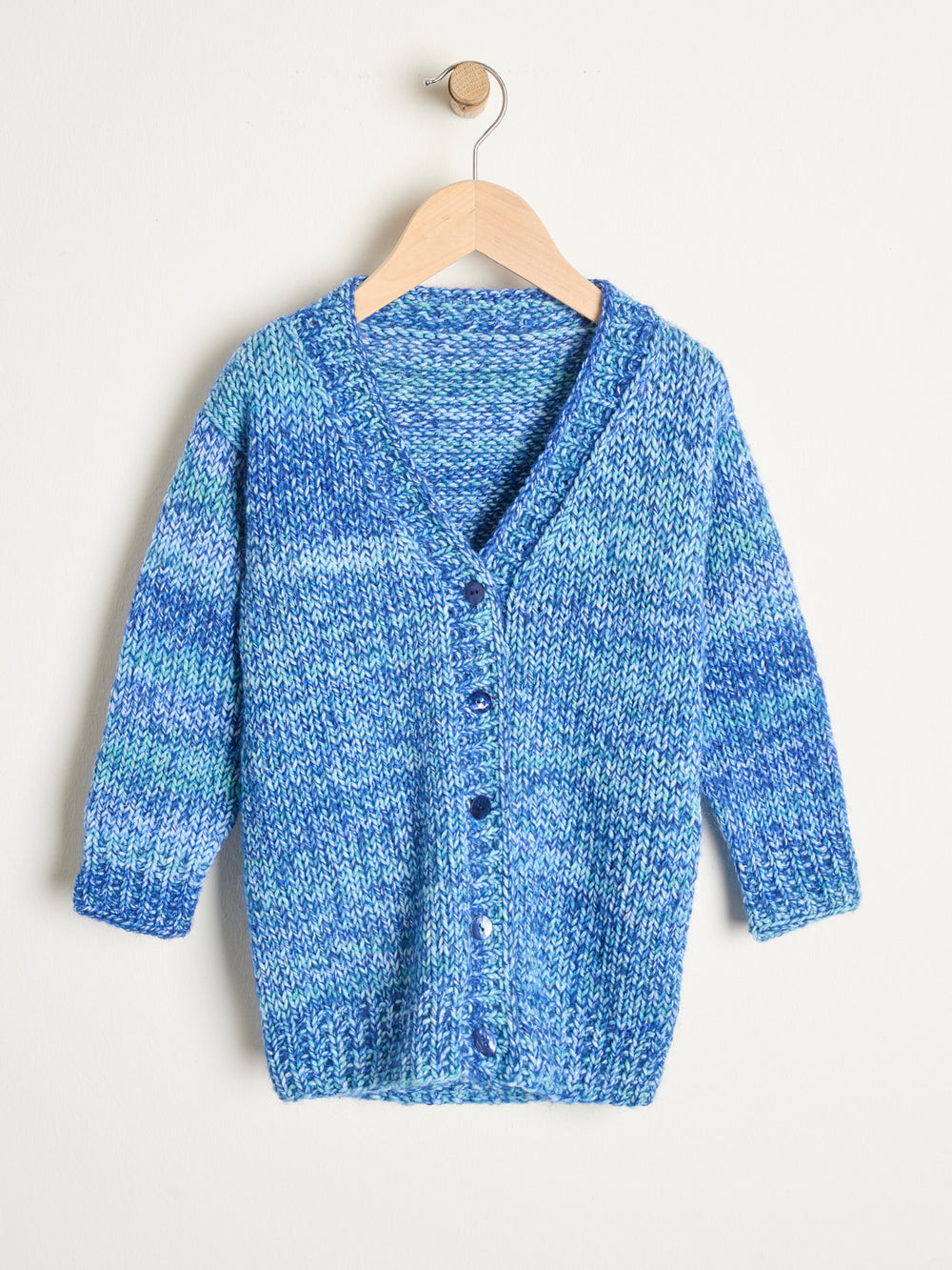 Linea cardigan har en vamset struktur og et flot farvespil. Den strikkes nemlig i det farvestrålende Mayflower Anyday Festival med Mayflower Elba som følgetråd. Cardiganen strikkes nedefra og op og monteres med knapper.